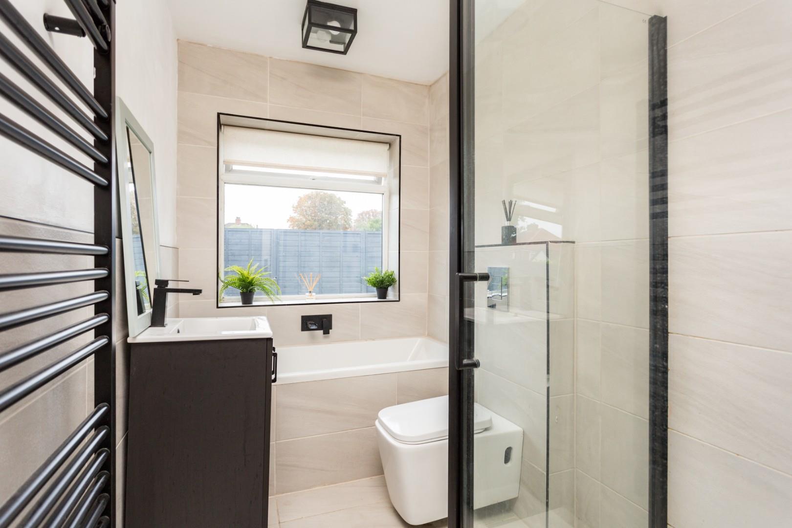 The property includes three well-proportioned bedrooms. The master bedroom sits at the front of the home, featuring a large bay window. Bedroom two can also fit a king size bed while bedroom three would make an ideal single room, nursery, or dedicated home office. The family bathroom is modern and functional, equipped with a stylish suite and contemporary fittings with separate wall-in shower and bath.