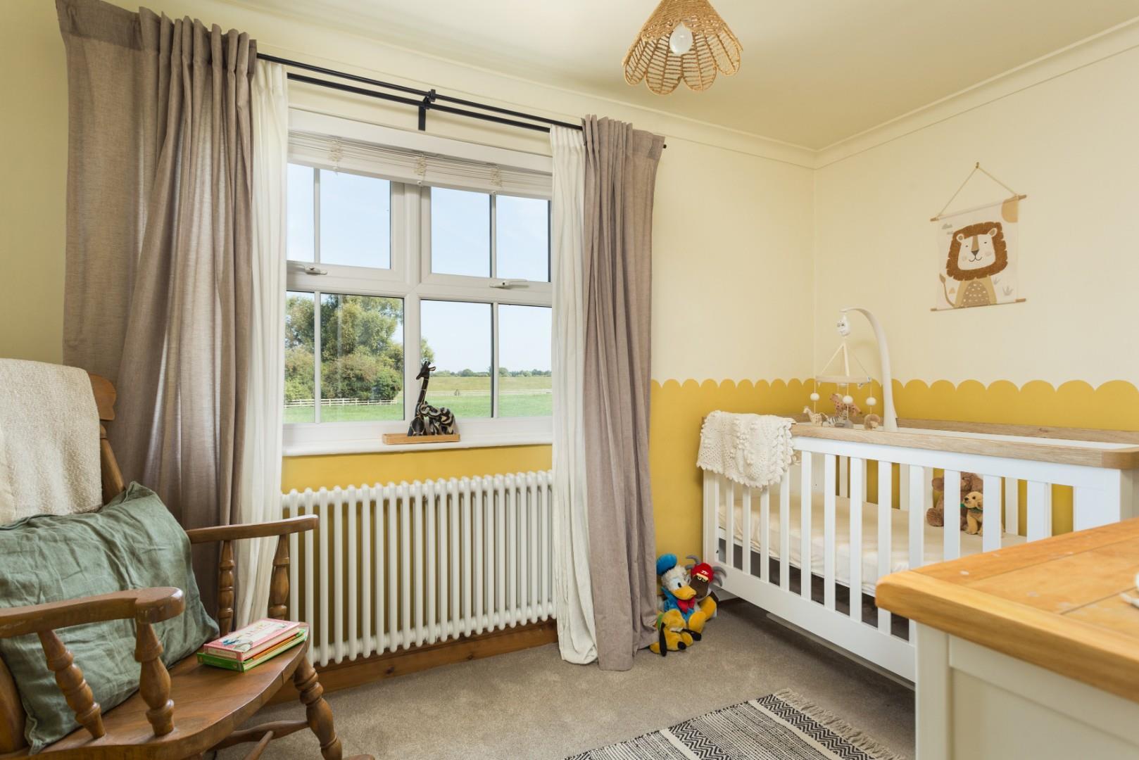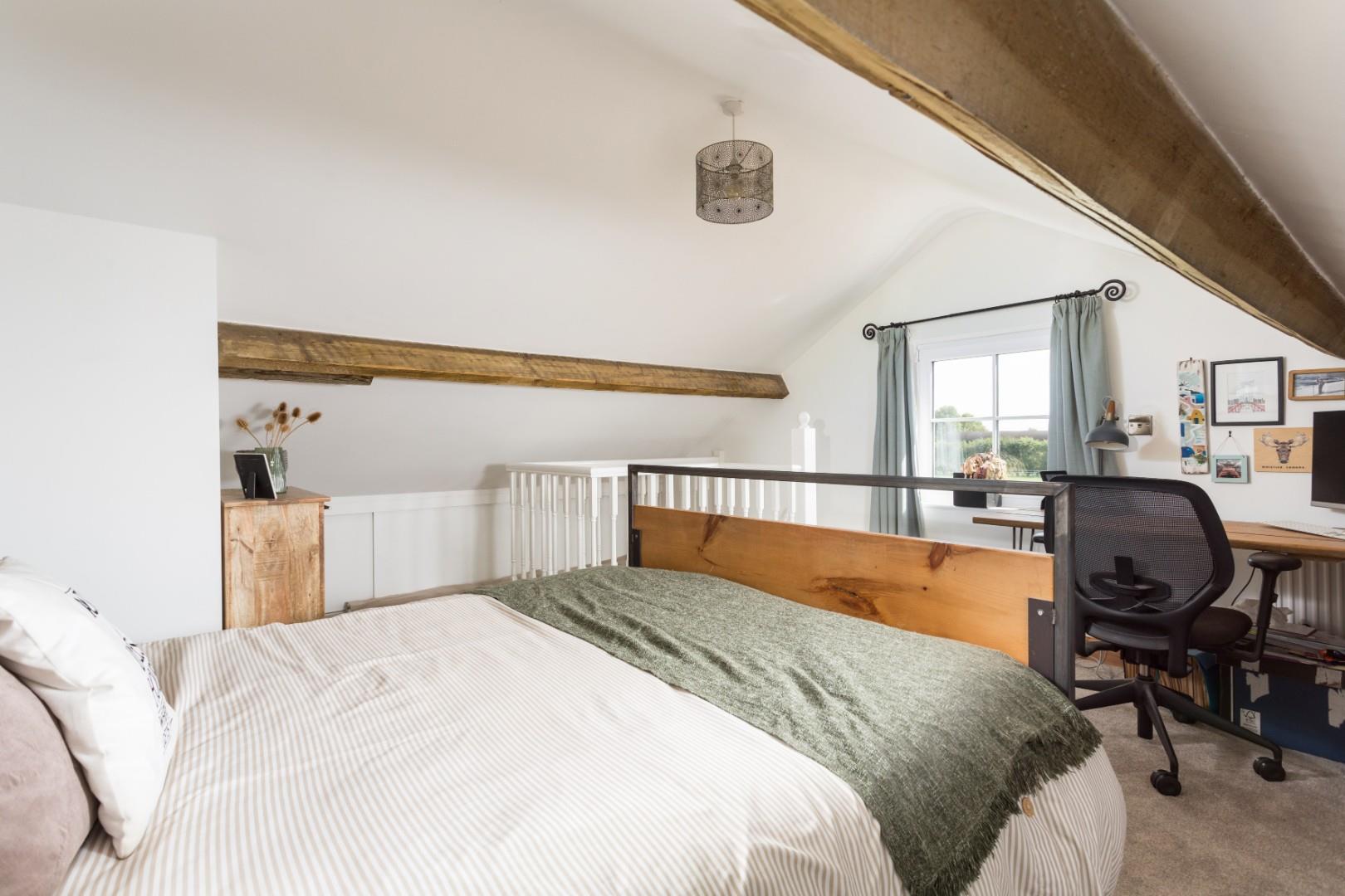A turned staircase rises to the top floor, where the third bedroom is located. Well-proportioned and full of charm, this room enjoys the added practicality of eaves storage to either side. A double-glazed window to the side elevation frames far-reaching rural views, completing this peaceful and versatile space.