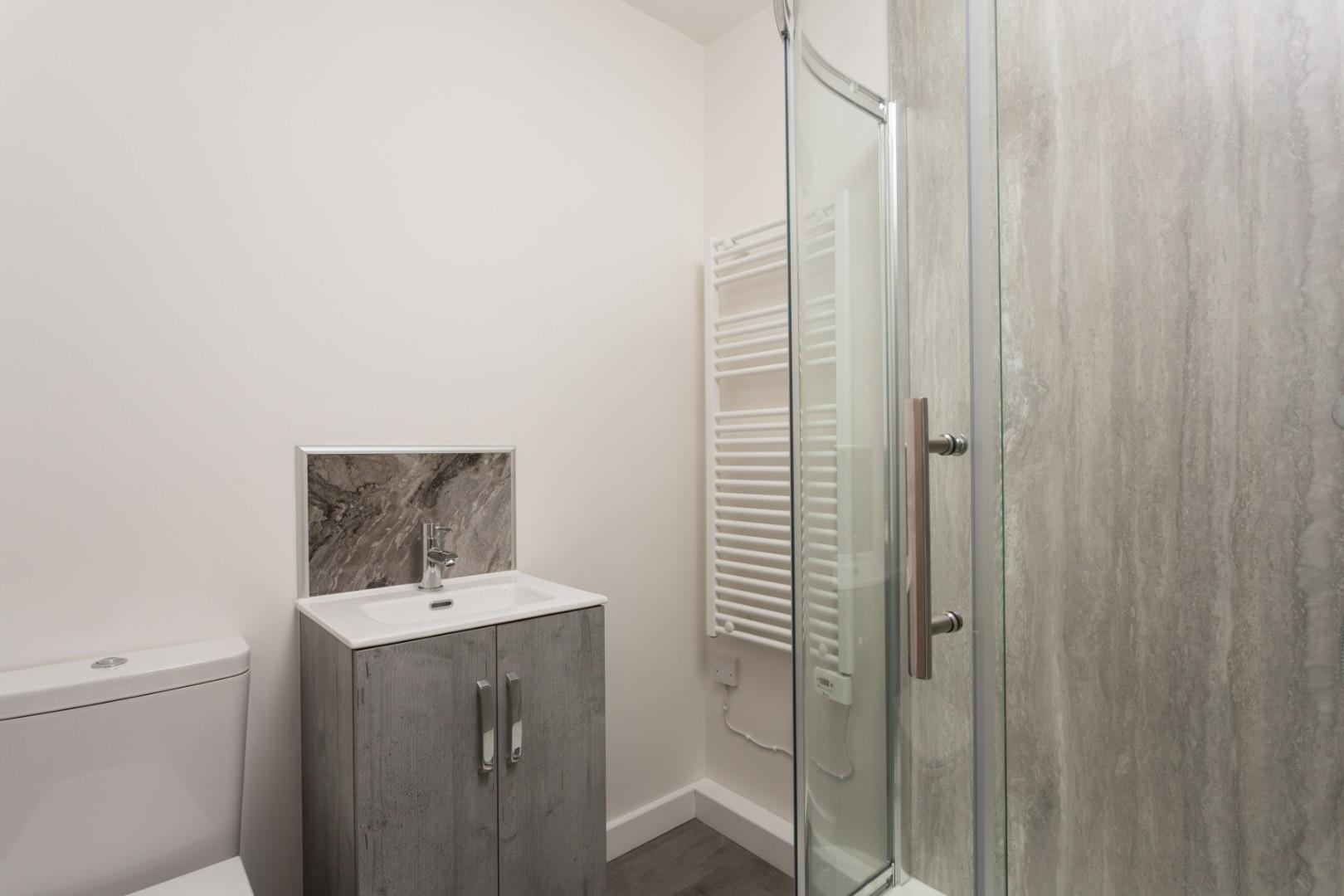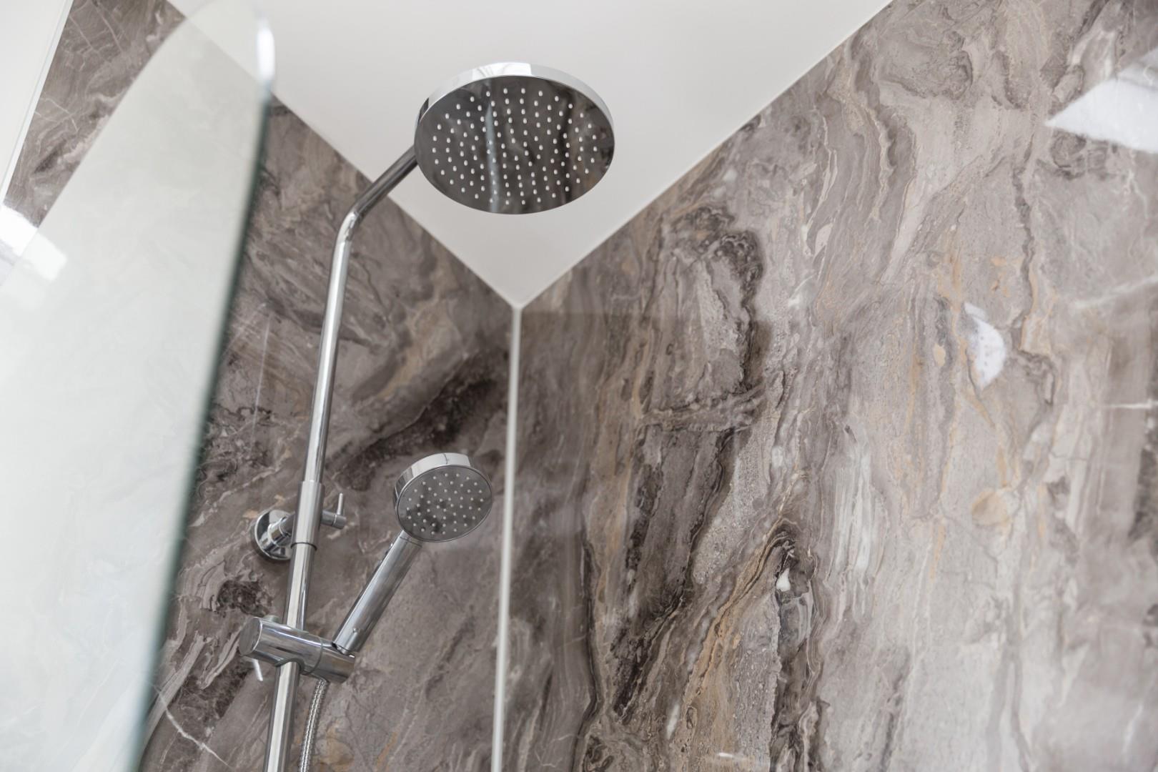 BATHROOM - Walk-in shower with double shower head, basin and WC