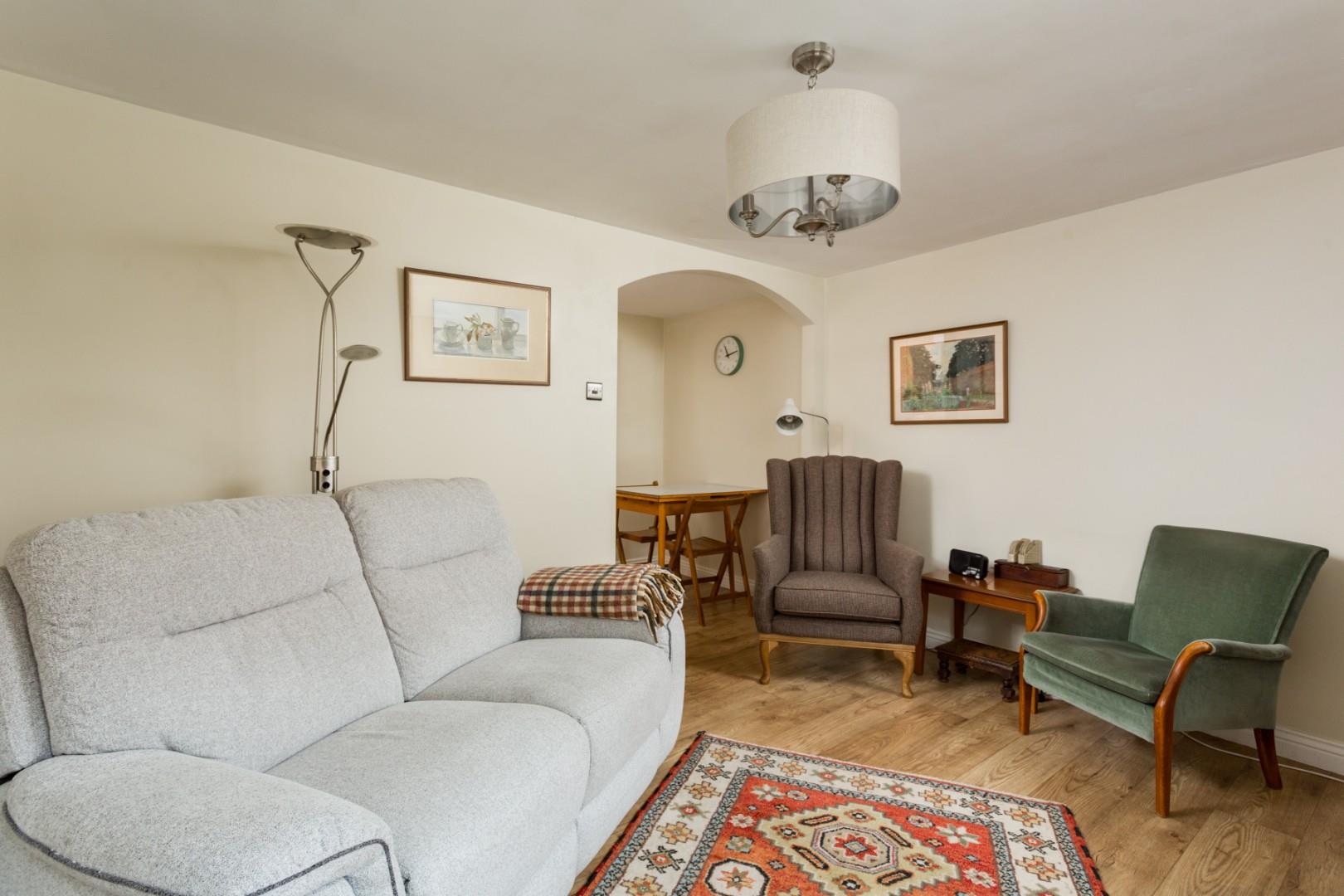 Outside - Externally there is a small forecourted area of front garden with a designated single parking space and use of a shared garden store directly opposite the property, which also offers an alternative use as additional garden space.