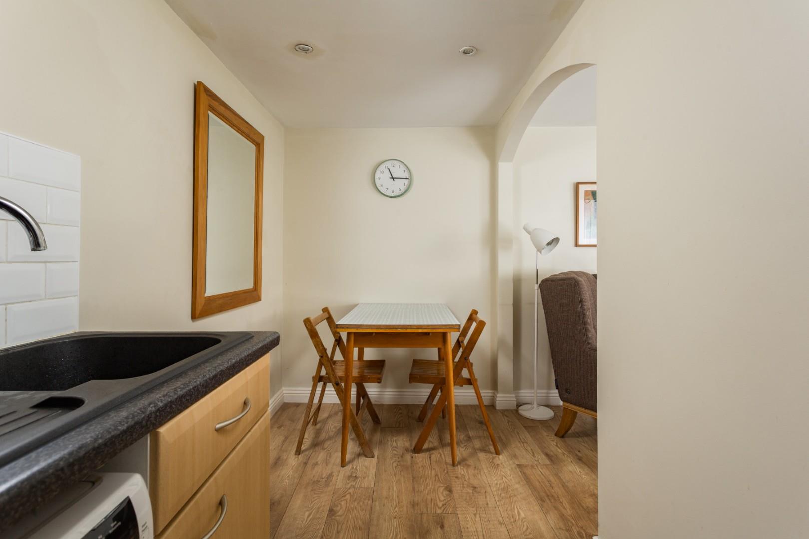 Inside - A generous reception hall with staircase leads into a sitting room with an archway through into an attractively appointed 18'8" (5.69m) long dining kitchen that provides base and wall storage cupboards and space for a small dining table, complemented by a built-in oven and hob with contemporary filter canopy above and freestanding appliance space.