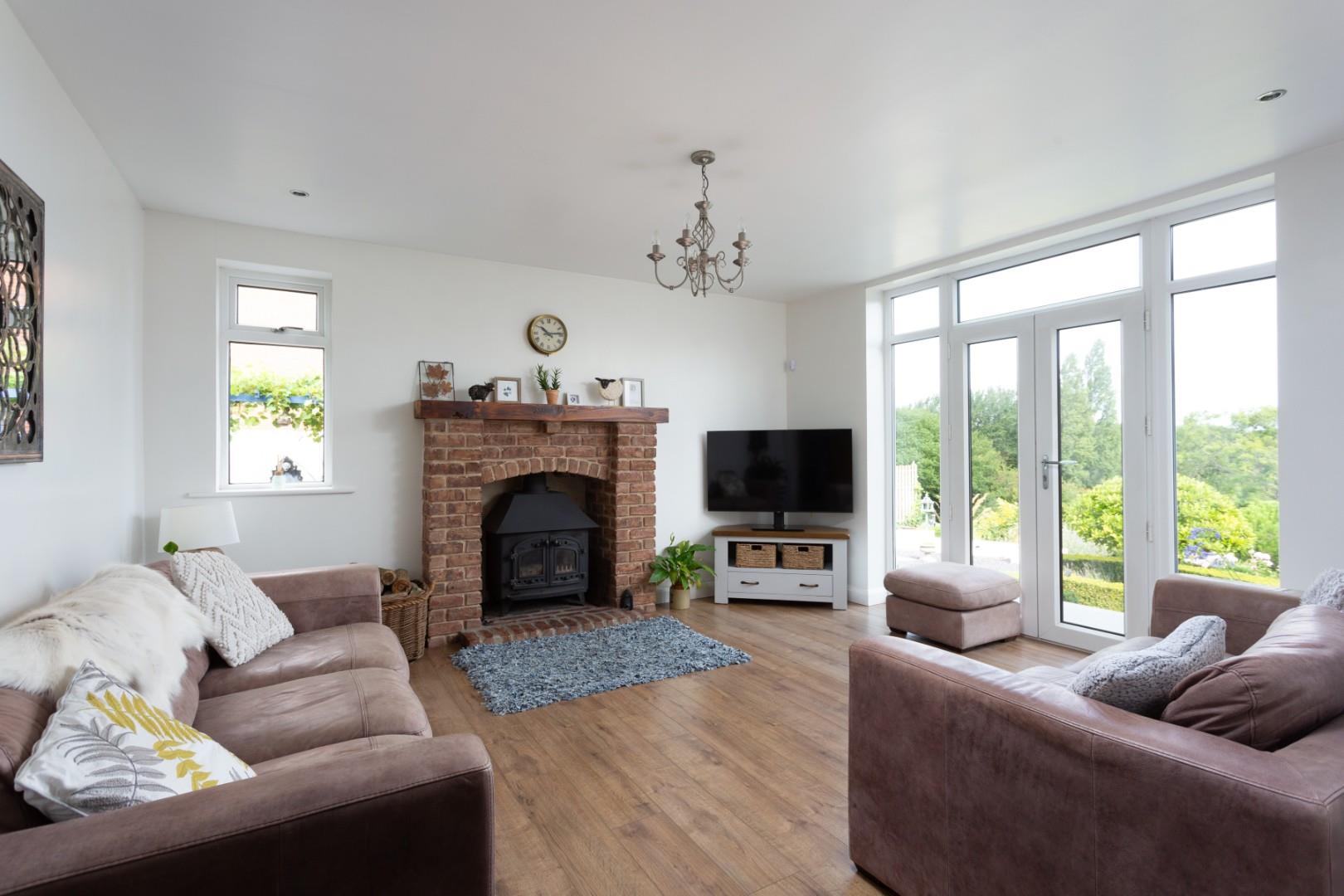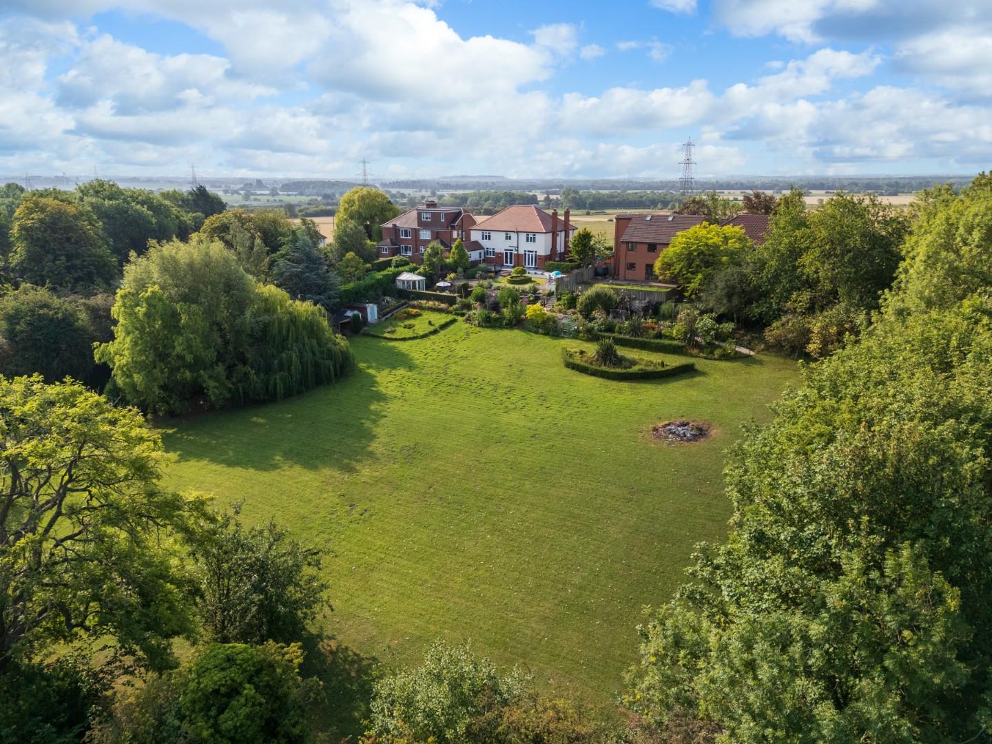 A substantial portion of the garden is formed by an expansive field, extending to 1.14 acre and laid to lawn, with mature tree-lined boundaries on either side offering privacy and a sense of seclusion. This generous outdoor space is ideal for families seeking room to roam or for those wishing to keep a horse within the comfort and convenience of their own grounds.