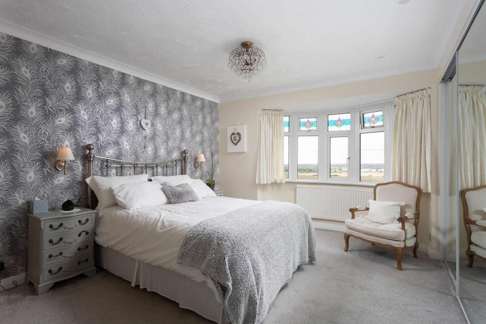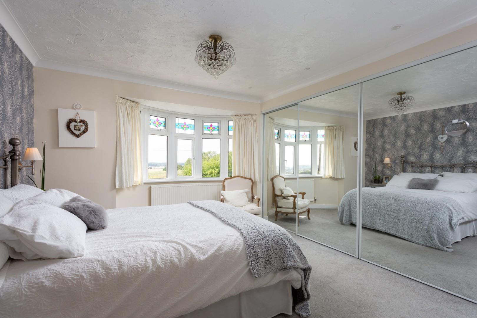 From the roadside, the house makes a striking impression. Rendered in a soft cream finish and complemented by traditional red brick and tiled detailing, the façade is both handsome and inviting. The symmetry of the bay-fronted windows on both the ground and first floors enhances the home's architectural character, creating a visual harmony that speaks to its 1930s origins while reflecting the quality of its modern evolution.