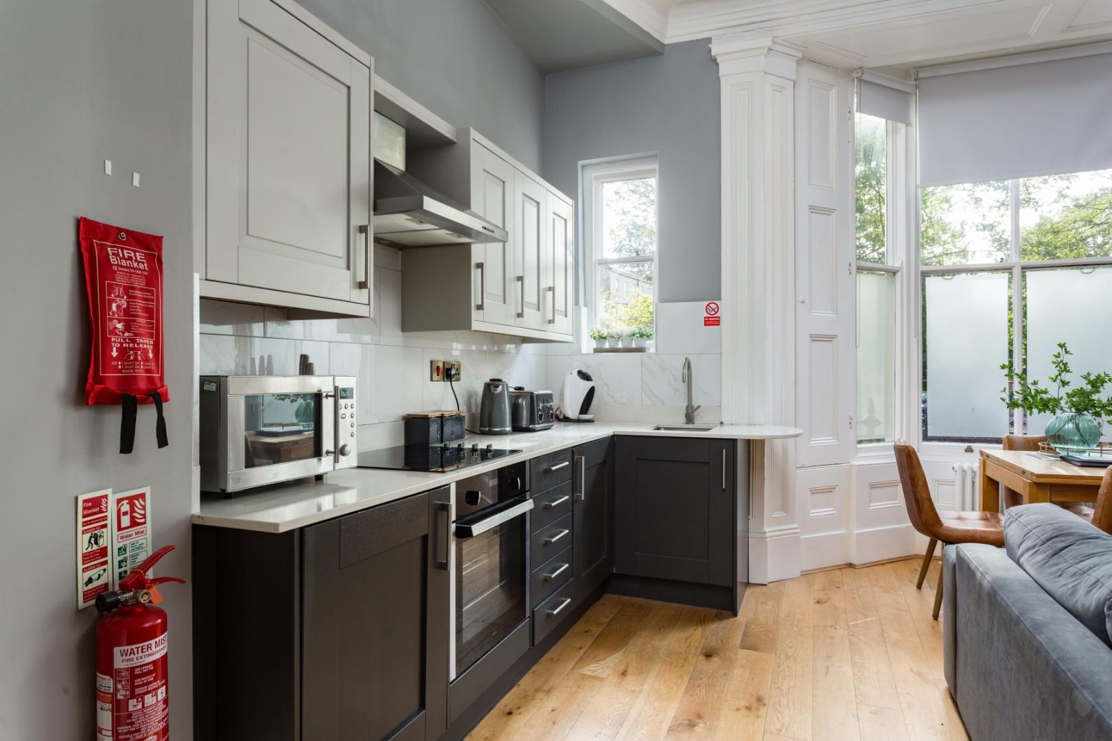 The apartment features a generous open-plan living area with clearly defined sitting, dining and kitchen zones, a well-proportioned double bedroom, and a sleek, modern shower room. Its layout and finish have consistently appealed to guests, offering both comfort and convenience in a highly desirable central location. The property also benefits from particularly easy access from the street, with just a couple of shallow steps leading directly from on-street parking to the front door - a small but meaningful detail that enhances the overall guest experience.