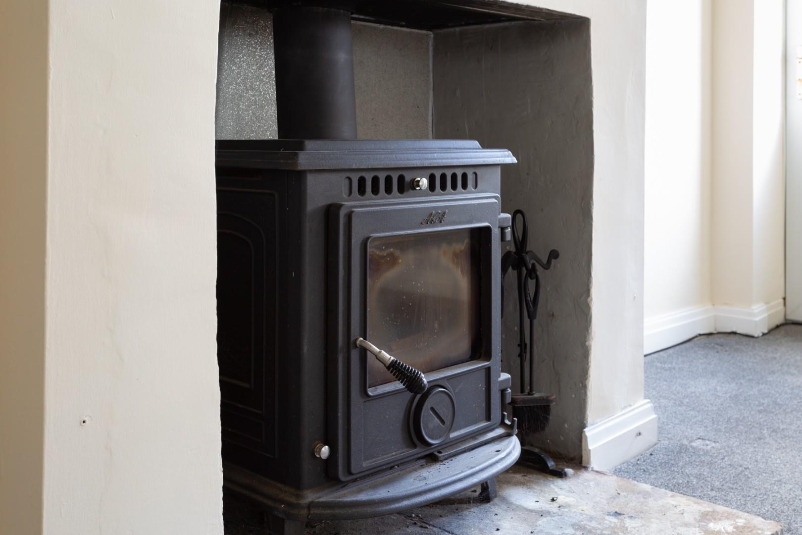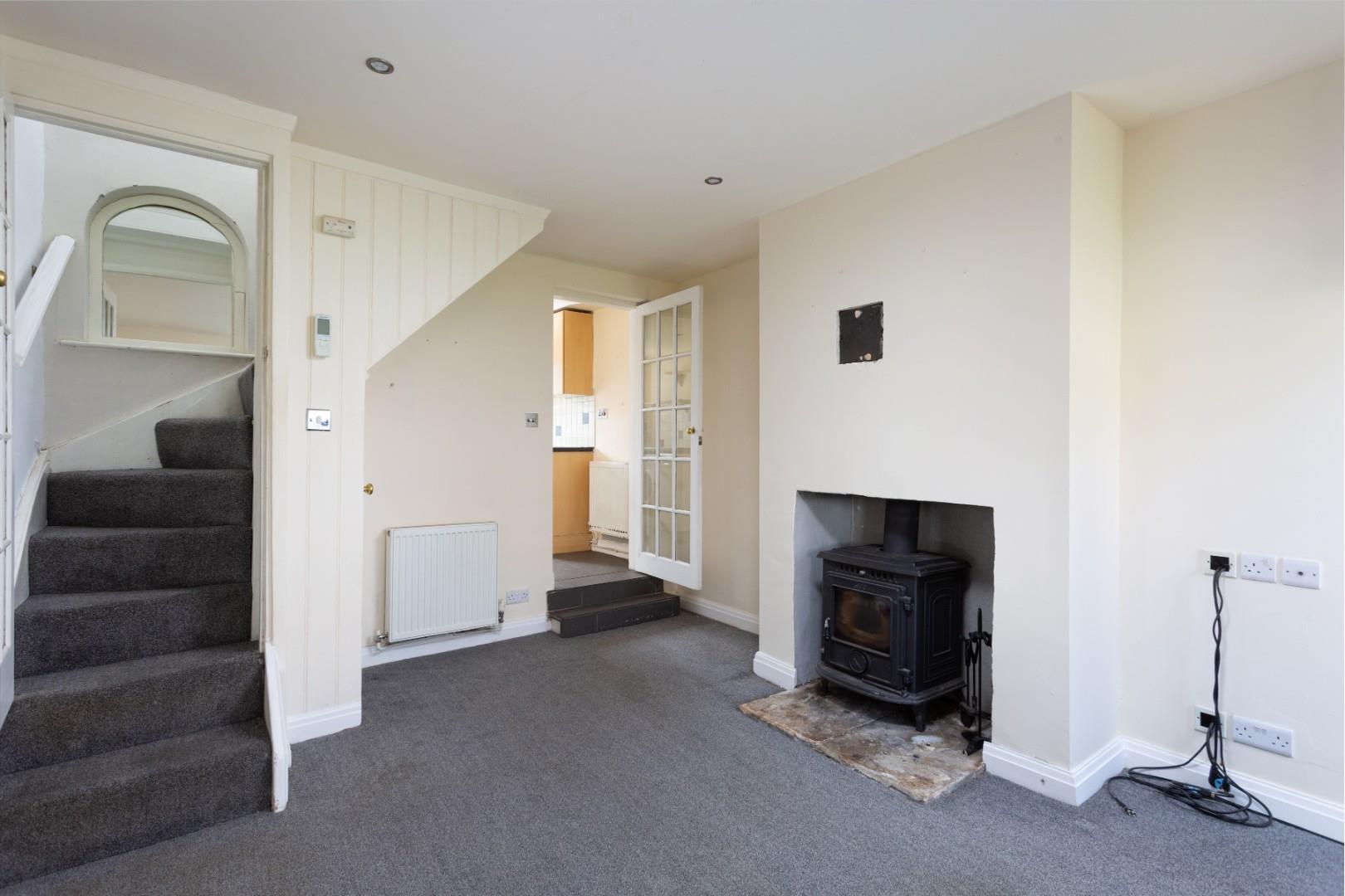 A cosy sitting room, complete with an Aga wood burning stove, provides a warm welcome to this delightful village home. The room also benefits from recessed lighting, wall light points, useful storage cupboard and a part glazed door allowing access to a steep staircase rising to the first floor.