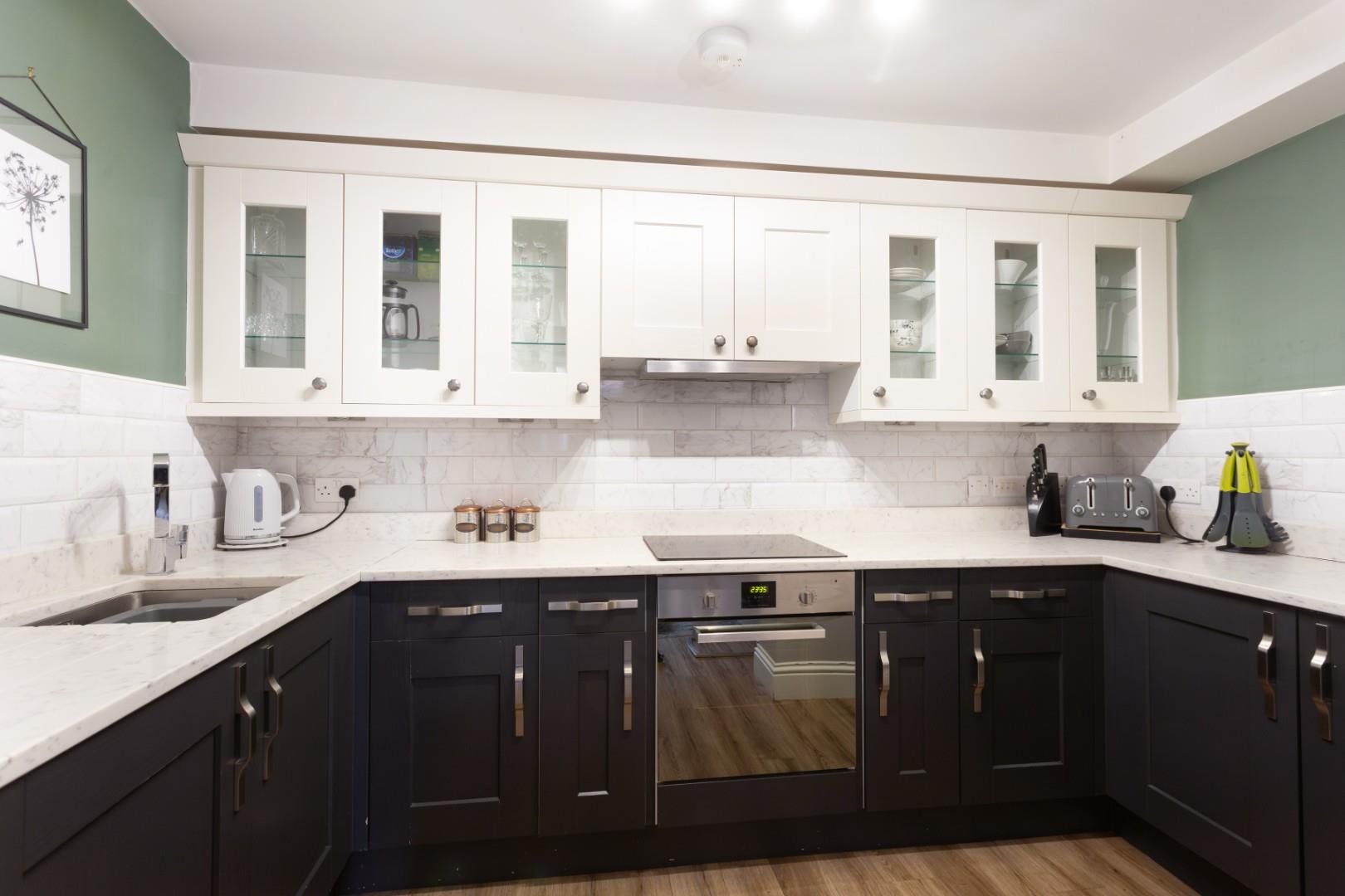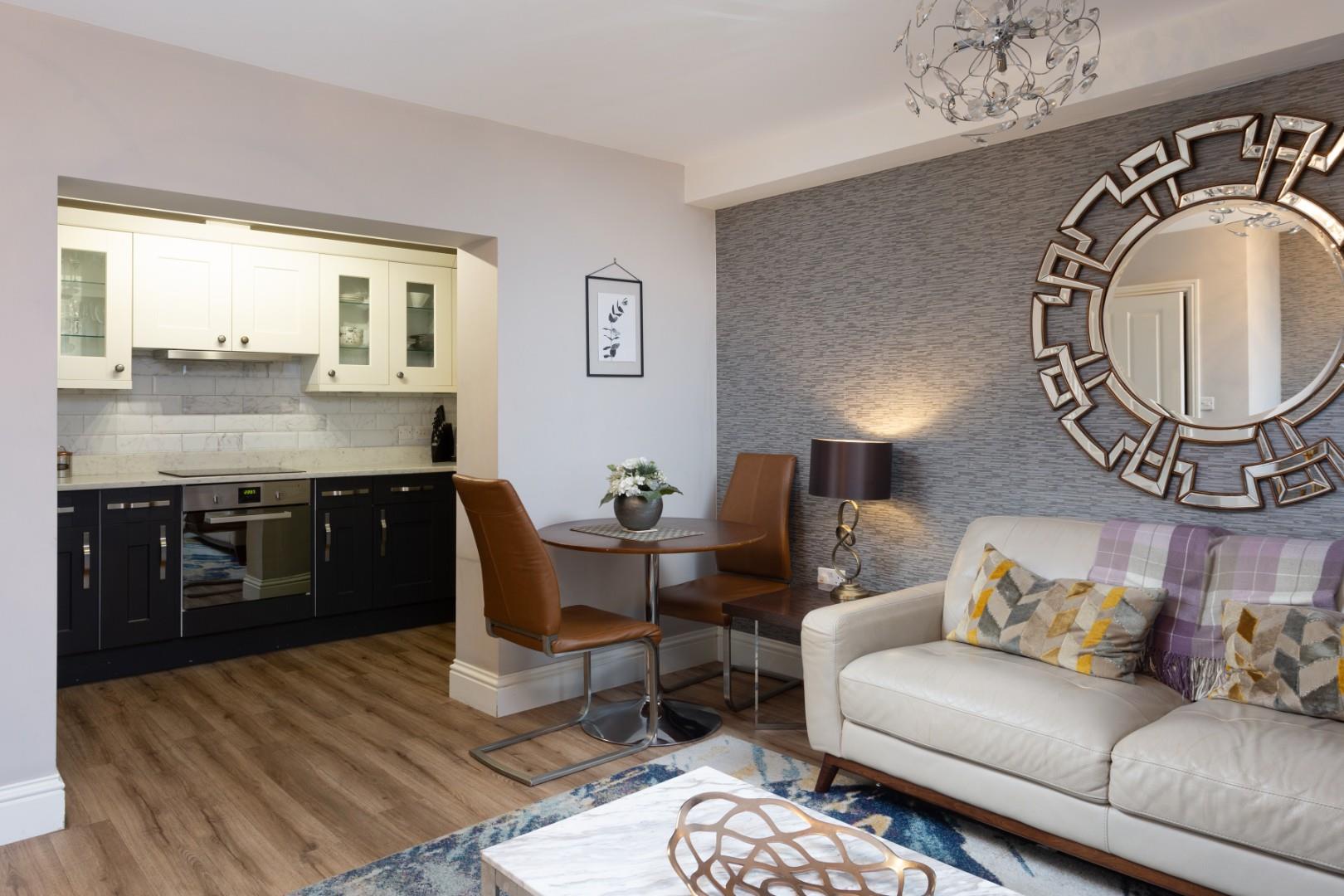 Accessed via its own private entrance, the apartment opens into a well-proportioned sitting room which provides a comfortable space to relax. The adjoining kitchen has been fitted with modern units and work surfaces, offering a practical yet stylish space for everyday cooking.