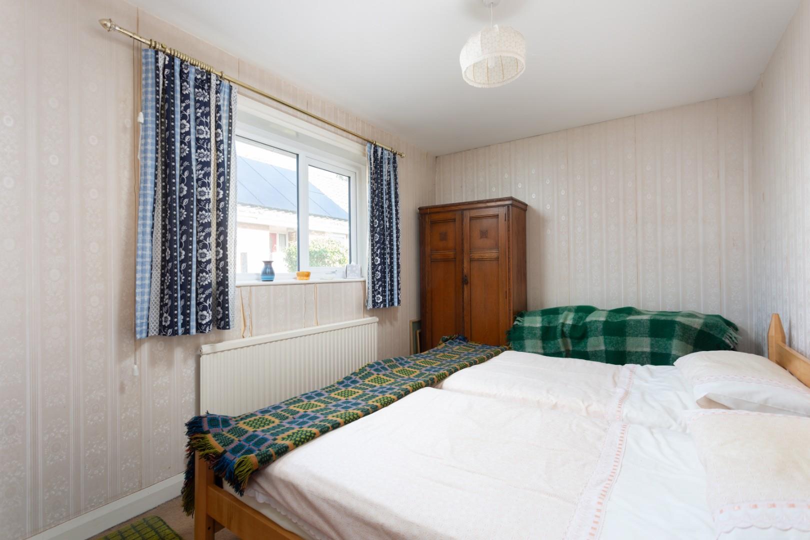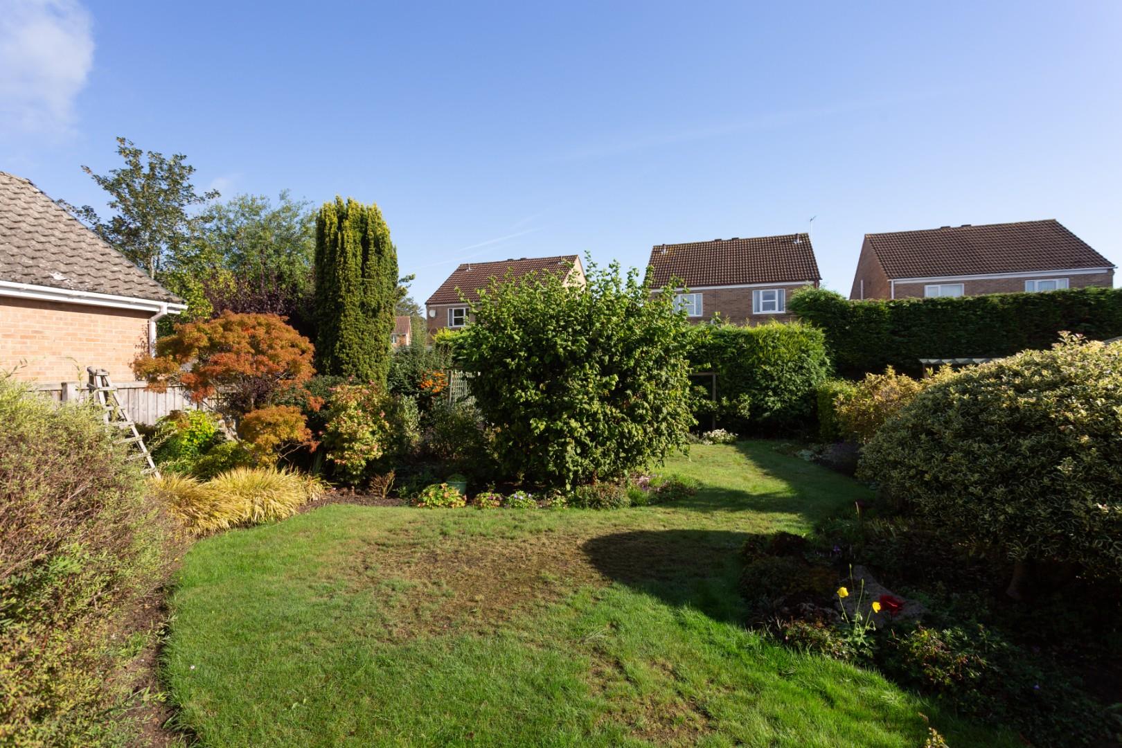 The good sized rear garden features a lawn, flowerbed borders, shed, apple and pear trees, veg beds and a soft fruit area.