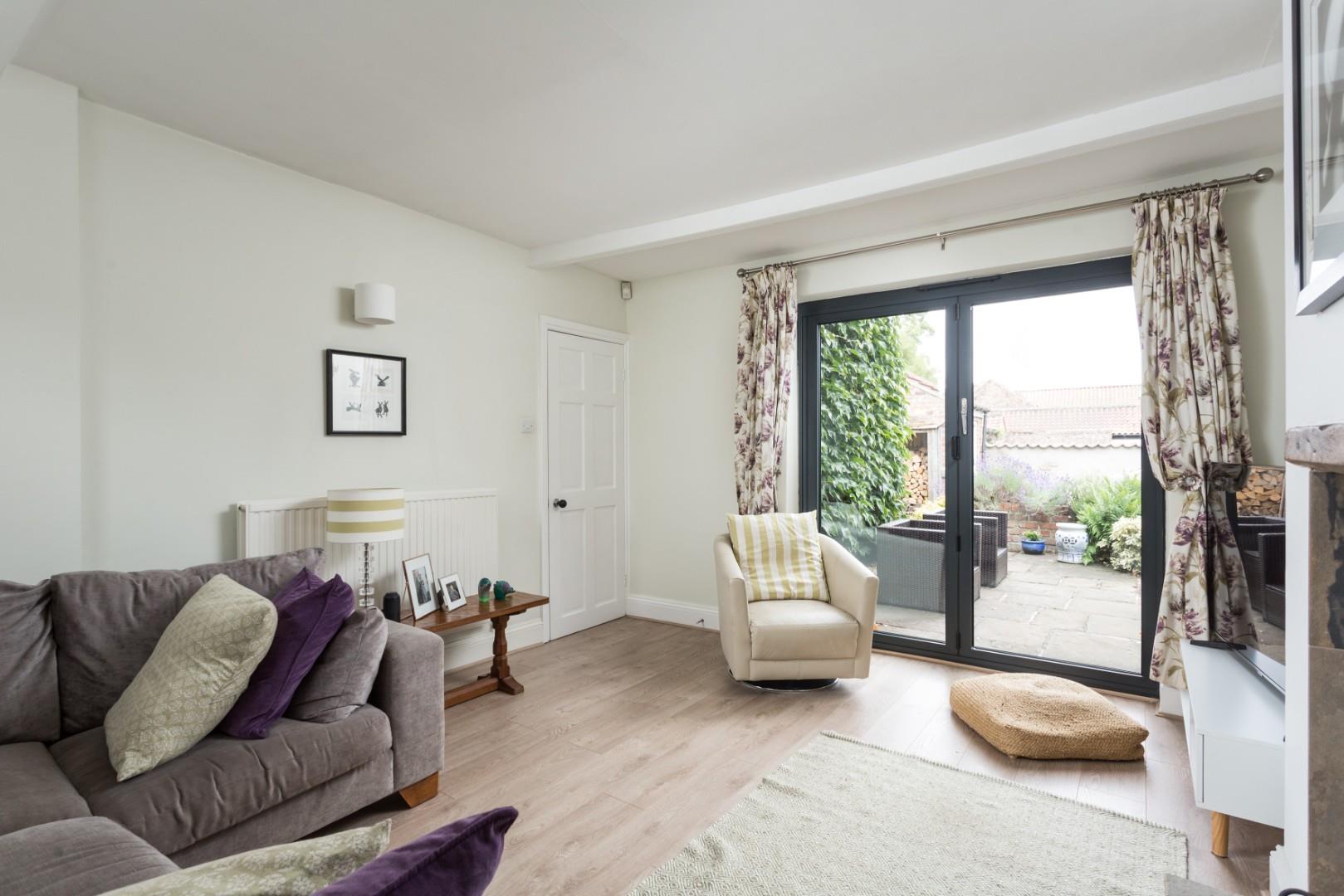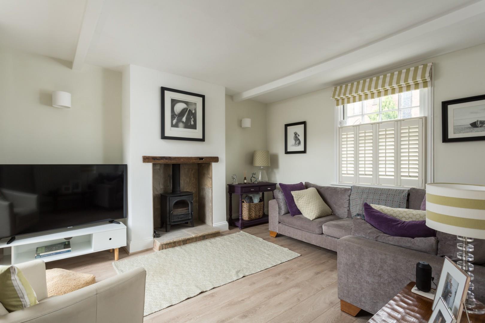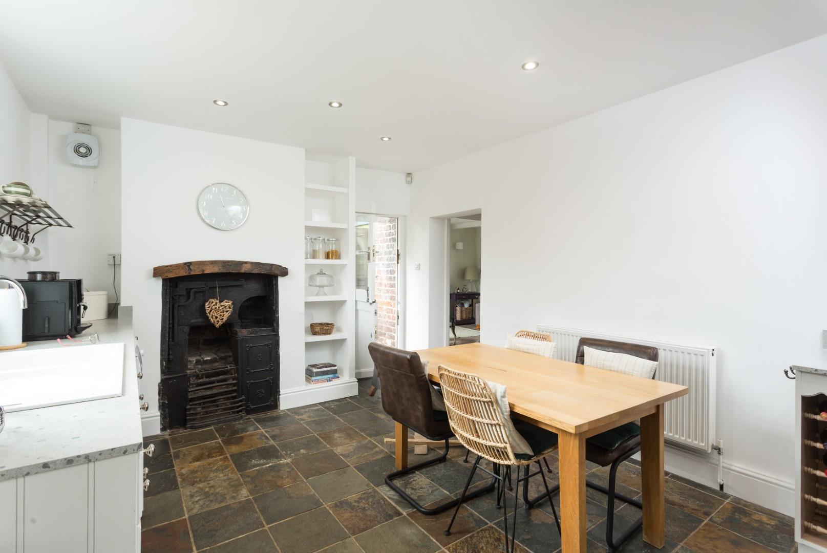 There is a further flexible reception room, with sash window and shutters, which is currently being used as a lounge/garden room but could easily be used as a dining room/playroom. This room benefits from a multi-fuel burning stove with stone tiled hearth and timber mantle, and large bi-folding doors opening out into the landscaped rear garden.