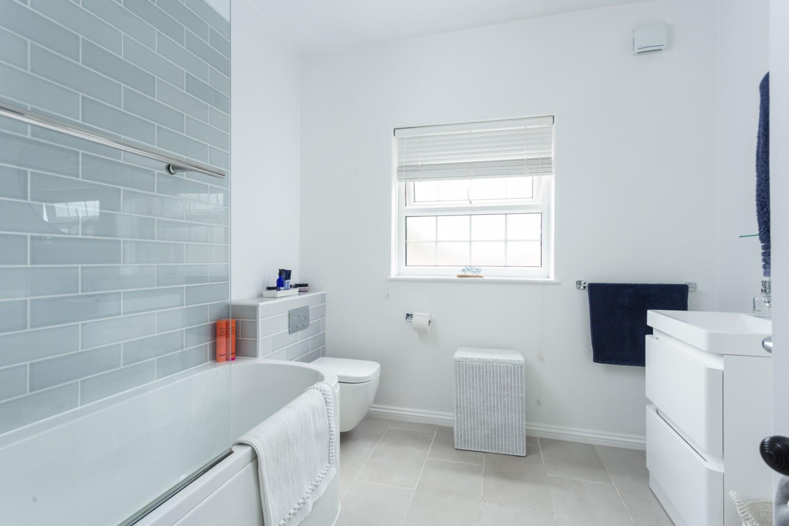 The house bathroom is contemporary in design and comprises a three-piece suite including bathtub with waterfall shower over, WC, vanity hand wash basin and heated towel rail.