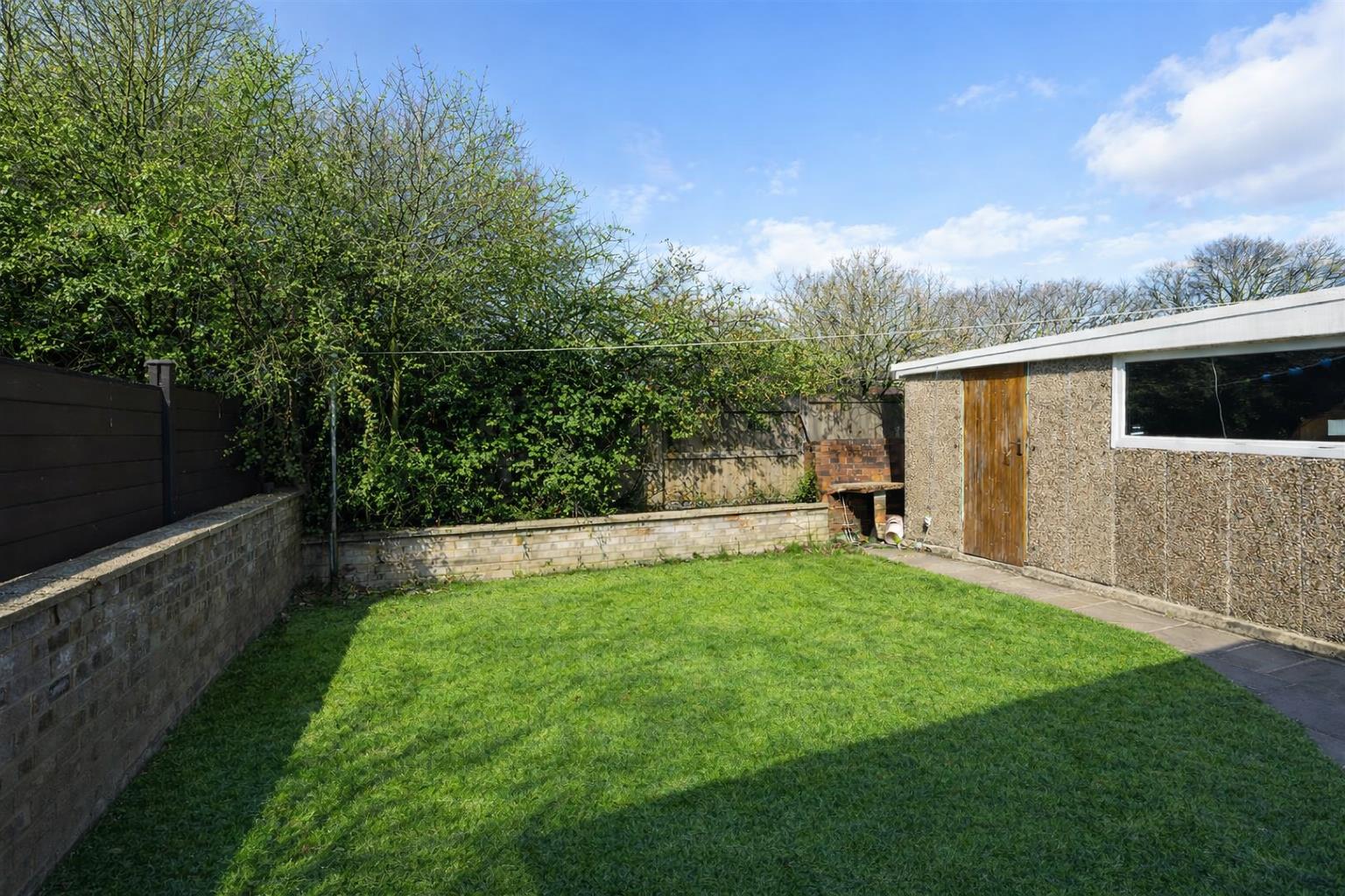 The property's front garden is rectangular in nature being extensively laid to lawn with a dwarf walled front and side boundary.