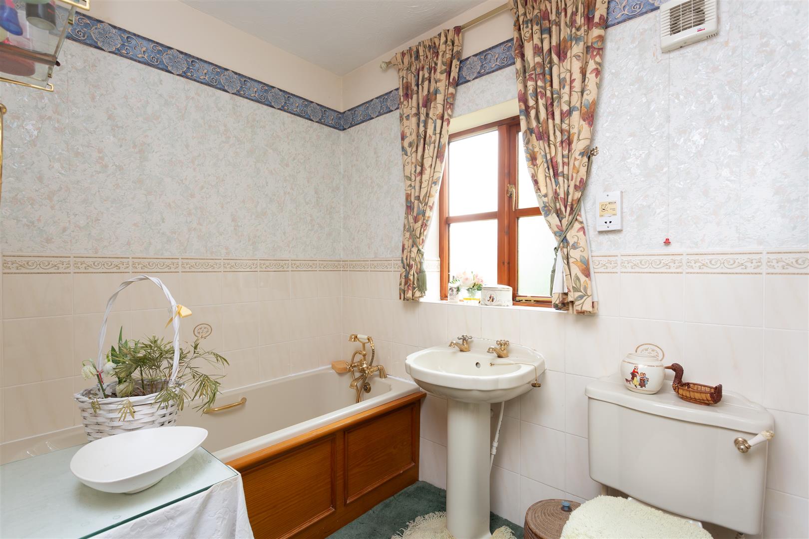 There is a second double bedroom located at the front with radiator, and the internal accommodation is completed by a house bathroom which has a low flush W.C., pedestal wash hand basin and inset panelled bath with half height tiled splashbacks. The bathroom also includes a radiator, extractor fan and shaving socket.