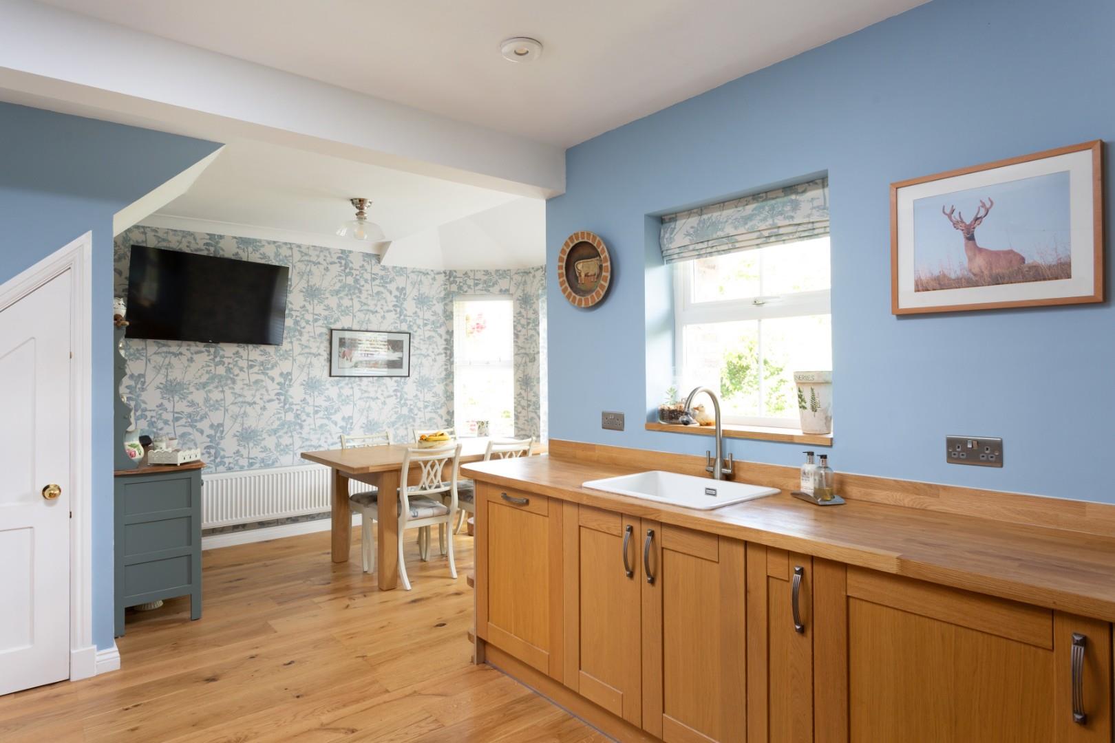 Inside - An impressive reception hall with central staircase, cloaks cupboard and oak flooring leads off into a cloakroom/wc, study, snug (both with front garden views) and a 17'4" (5.28m) long living room with wood burning stove (2024) and double doors opening out into the rear garden. The stunning dining kitchen was restyled in 2024 to feature oak worktops, integrated appliances (dishwasher, 5 ring gas hob, eye-level oven and grill) and a range of base storage cupboards, complemented by oak flooring, double doors off the dining area opening out into the rear garden and a fabulous utility room with further oak worktops, integrated microwave, freestanding appliance space and a door out to the side of the property.