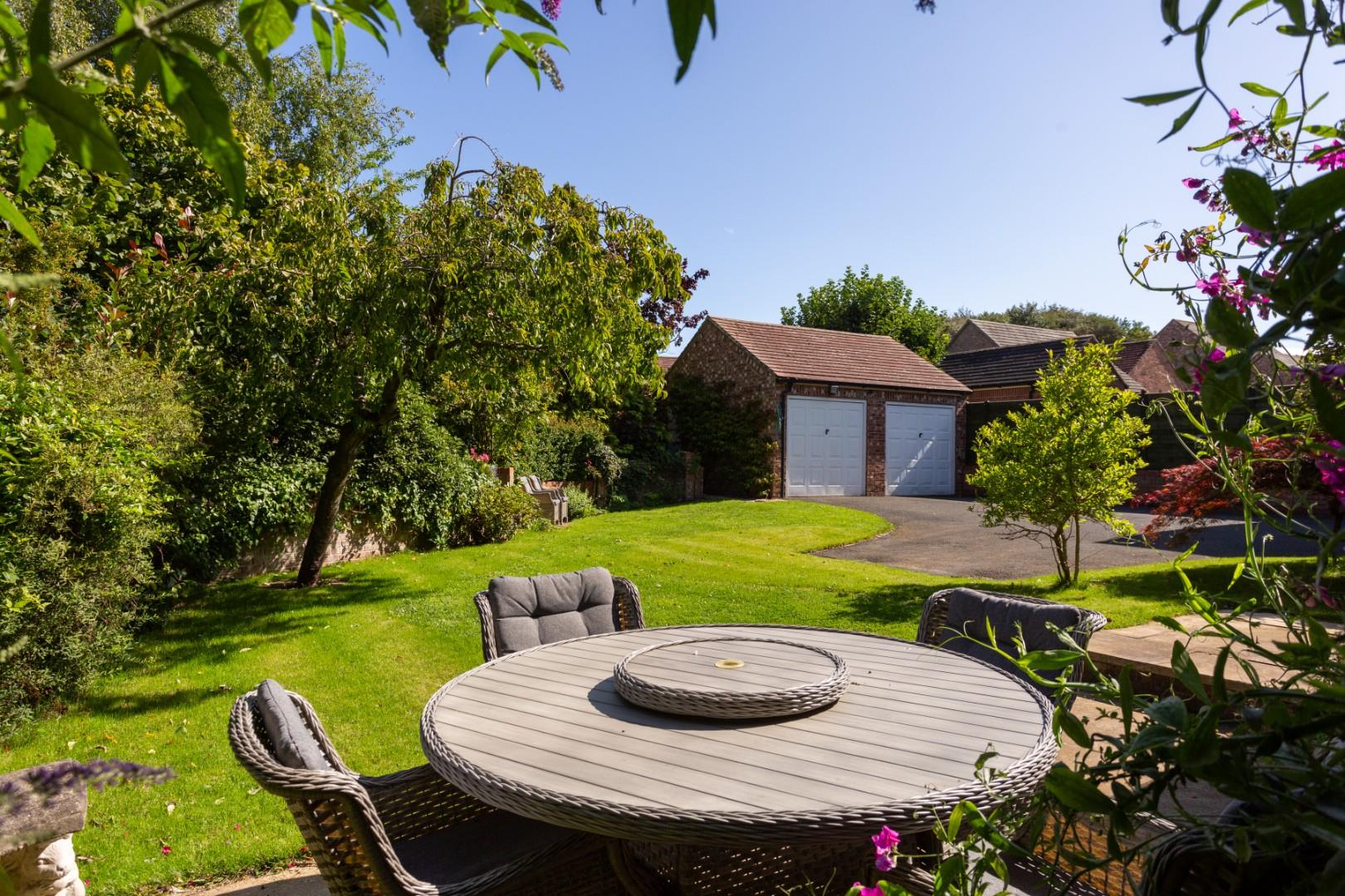 Outside - The pretty front garden has recently been landscaped to provide an idyllic haven and a gated driveway provides parking and access up to a generous area of hardstanding and a detached double garage which comes with planning permission in place to convert into an annex.