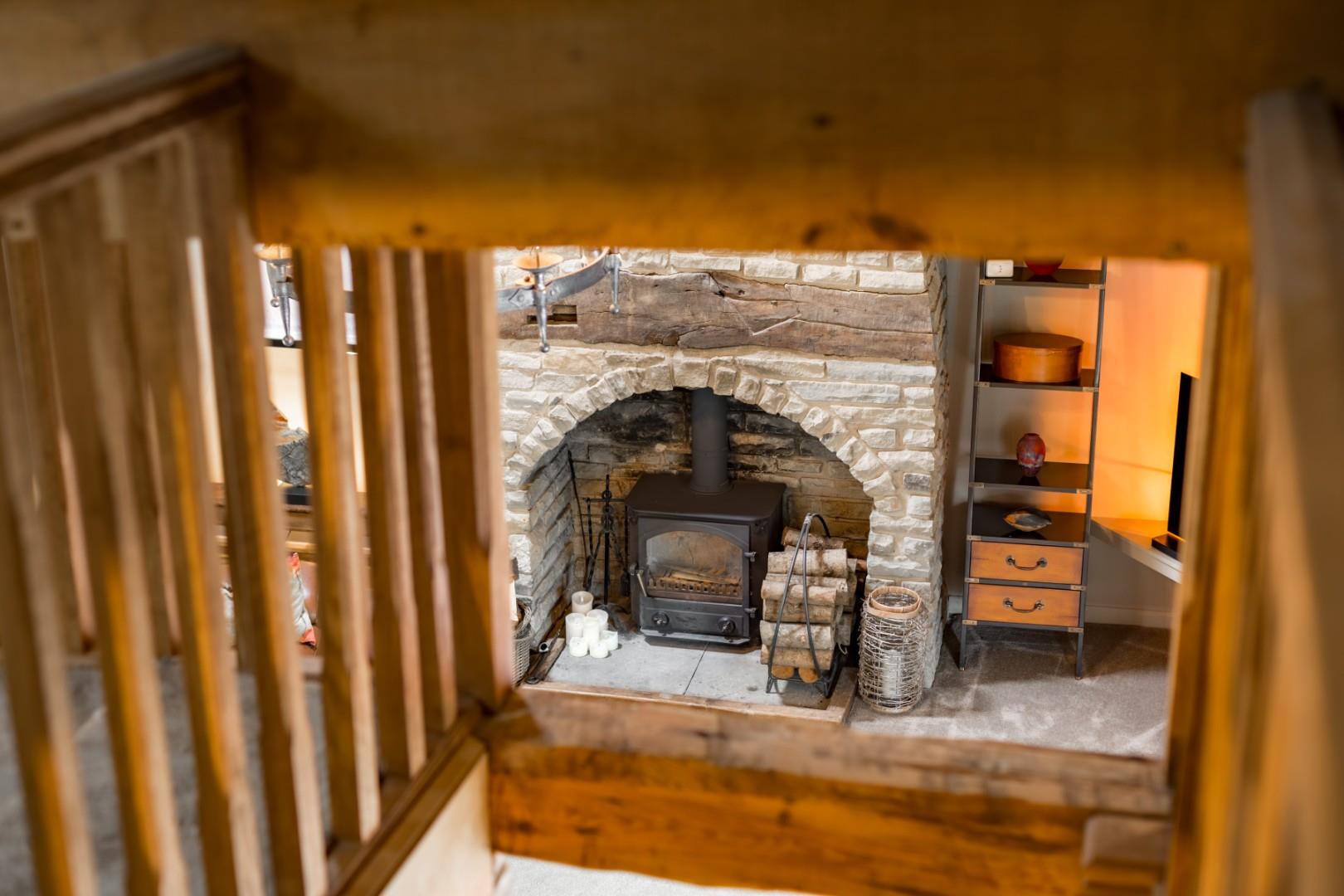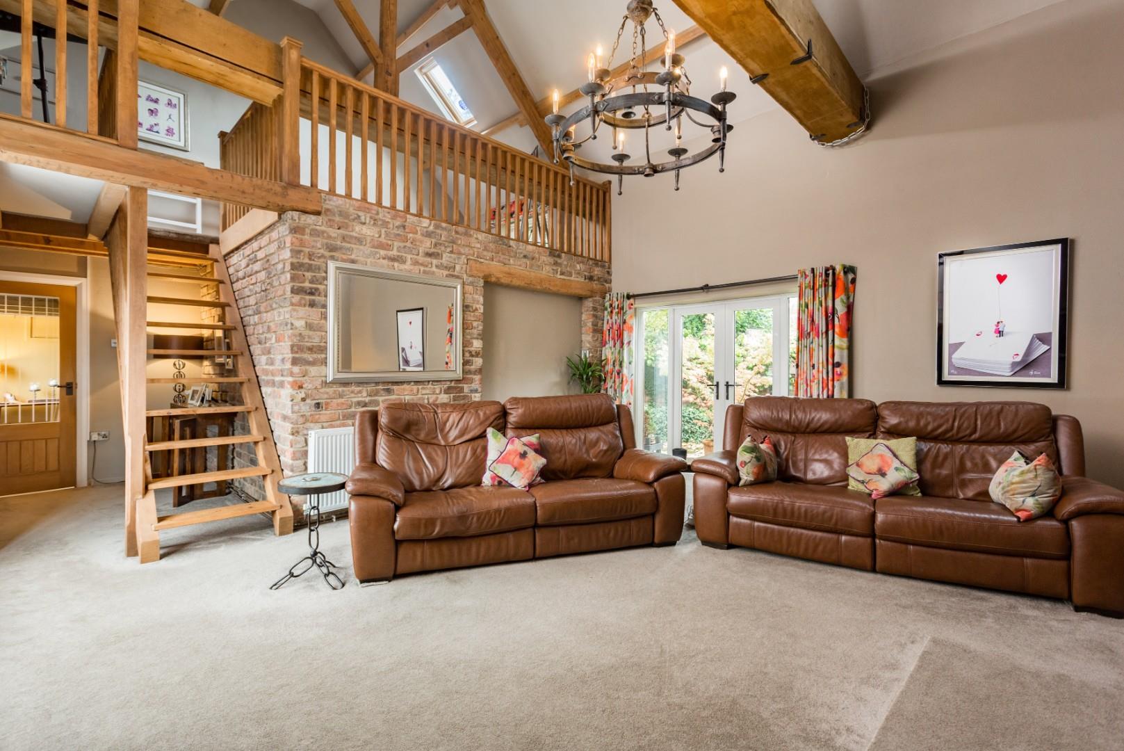 Inside - A reception hall welcomes you to Dawnay Farm and latch doors lead off into a generous bootility room, stylish shower room with wc and a show stopping sitting room with a stunning high vaulted ceiling soaring up to 19'10" (6.05m) and featuring a magnificent sandstone fireplace with wood burning stove, double doors out into a secluded courtyard and a timber staircase climbing up to a fabulous mezzanine level, currently used as a gym but versatile enough to be repurposed as a snug, home office or play room.