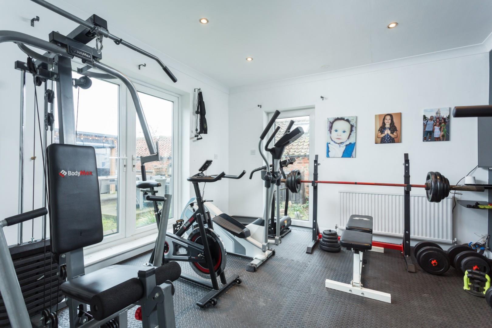 The feeling of space is felt as soon as you walk through the front door with a sizeable entrance hallway welcoming you. To the ground floor are two nice sized reception rooms with the main living room found to the front with a feature fireplace with wood burning stove. To the rear of ground floor is the second reception room having French doors to the rear garden, currently being used as a home gym. This room would lend itself to becoming an ideal ground floor bedroom with a separate shower room running alongside.