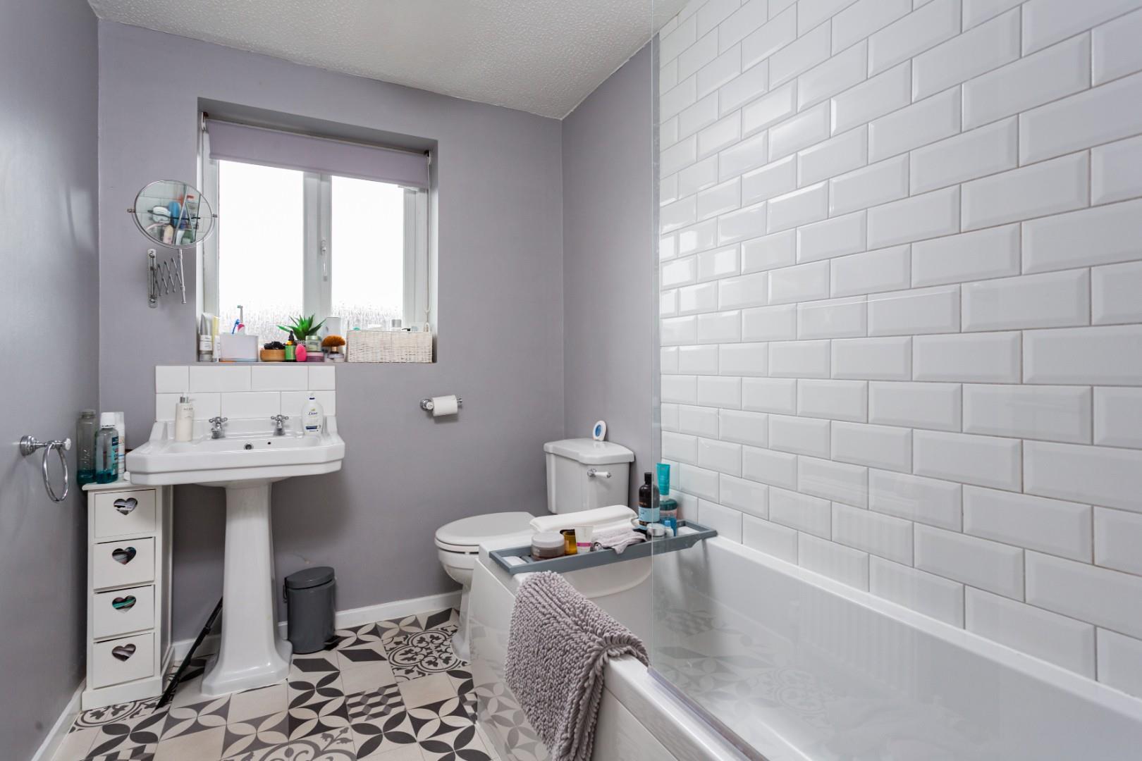 The internal accommodation is completed by the house bathroom which has a modern three-piece-suite comprising of a low flush W.C., pedestal wash hand basin and inset bath with shower attachment and full height tiled splashbacks. In addition, there is a towel rail with radiator and extractor fan.