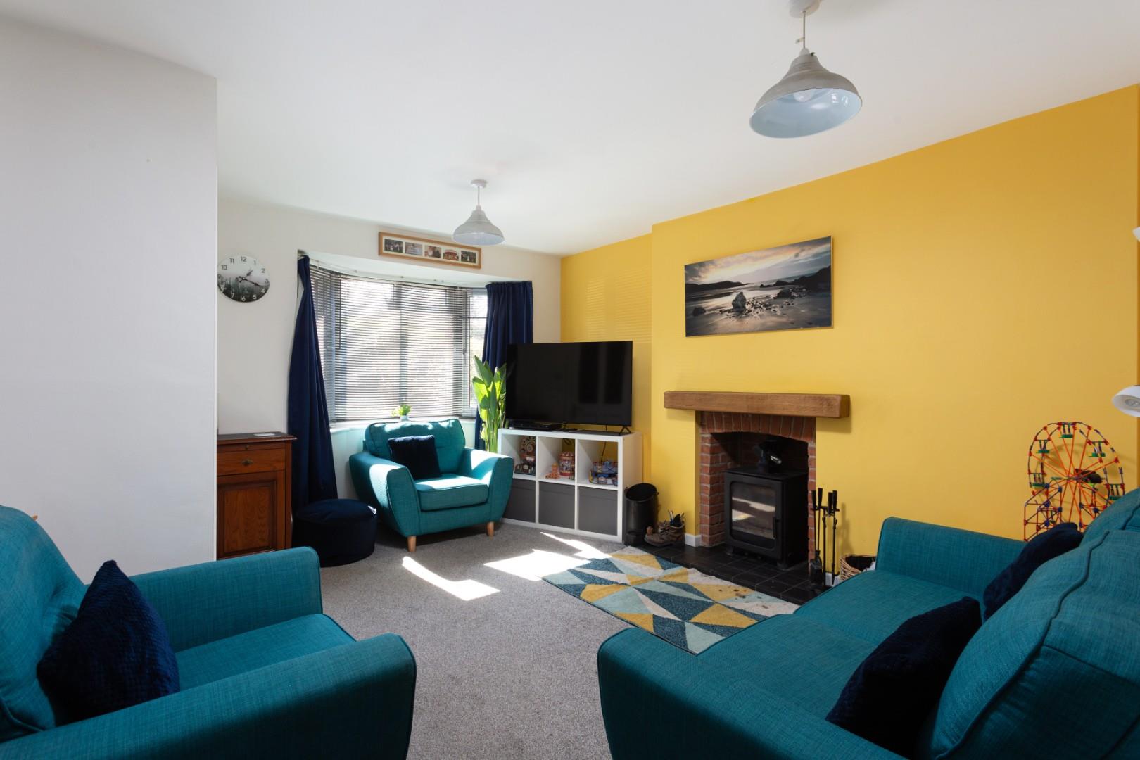 Accessed via an entrance hall with staircase rising to the upper floors, with the sitting room leading off which features a central log burning stove set upon a tiled hearth beneath a timber mantel, a useful under stairs storage cupboard, and a bay window which draws in the natural light.