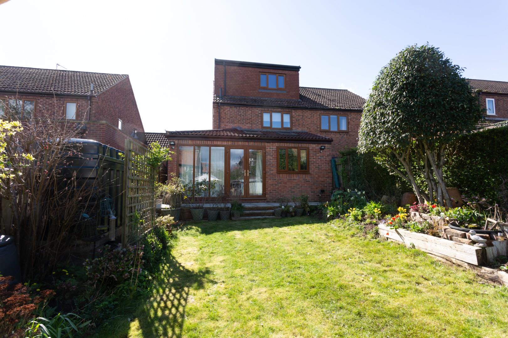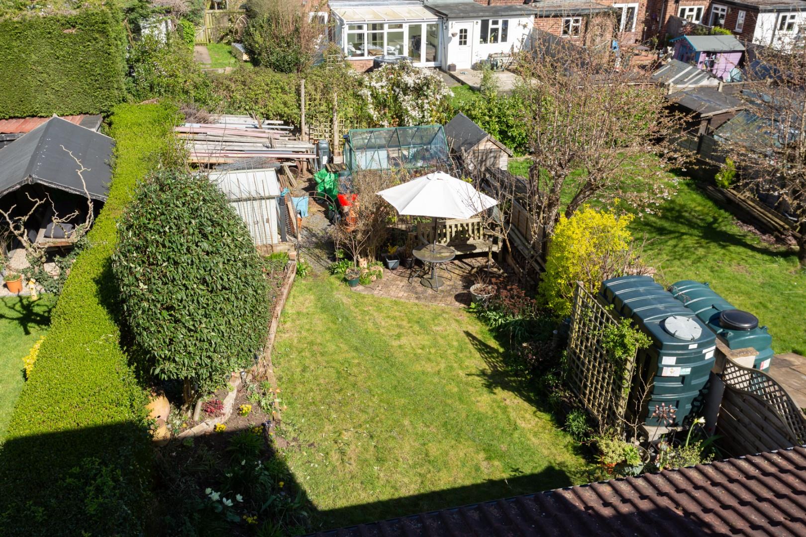 To the rear is an enclosed garden offering a lovely degree of variety, with a raised patio, lawn and raised planting beds, a greenhouse and useful storage sheds are located to the end of the garden.