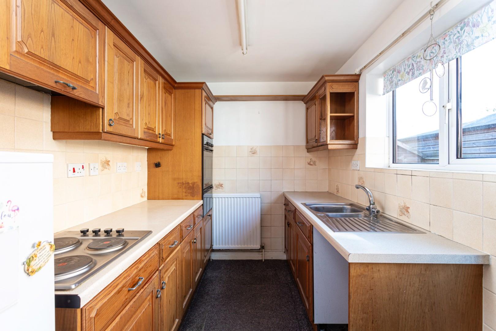 The accommodation begins with an entrance hall featuring a practical coat, boot, and shoe cupboard and doors leading off into a spacious 17'5" (5.31m) long living room with views over the front garden and a feature fireplace with a redundant back boiler. The kitchen features a double glazed door leading out to the driveway and presents buyers with an exciting opportunity to replace and re-imagine the original 1990's base and wall units currently in situ.