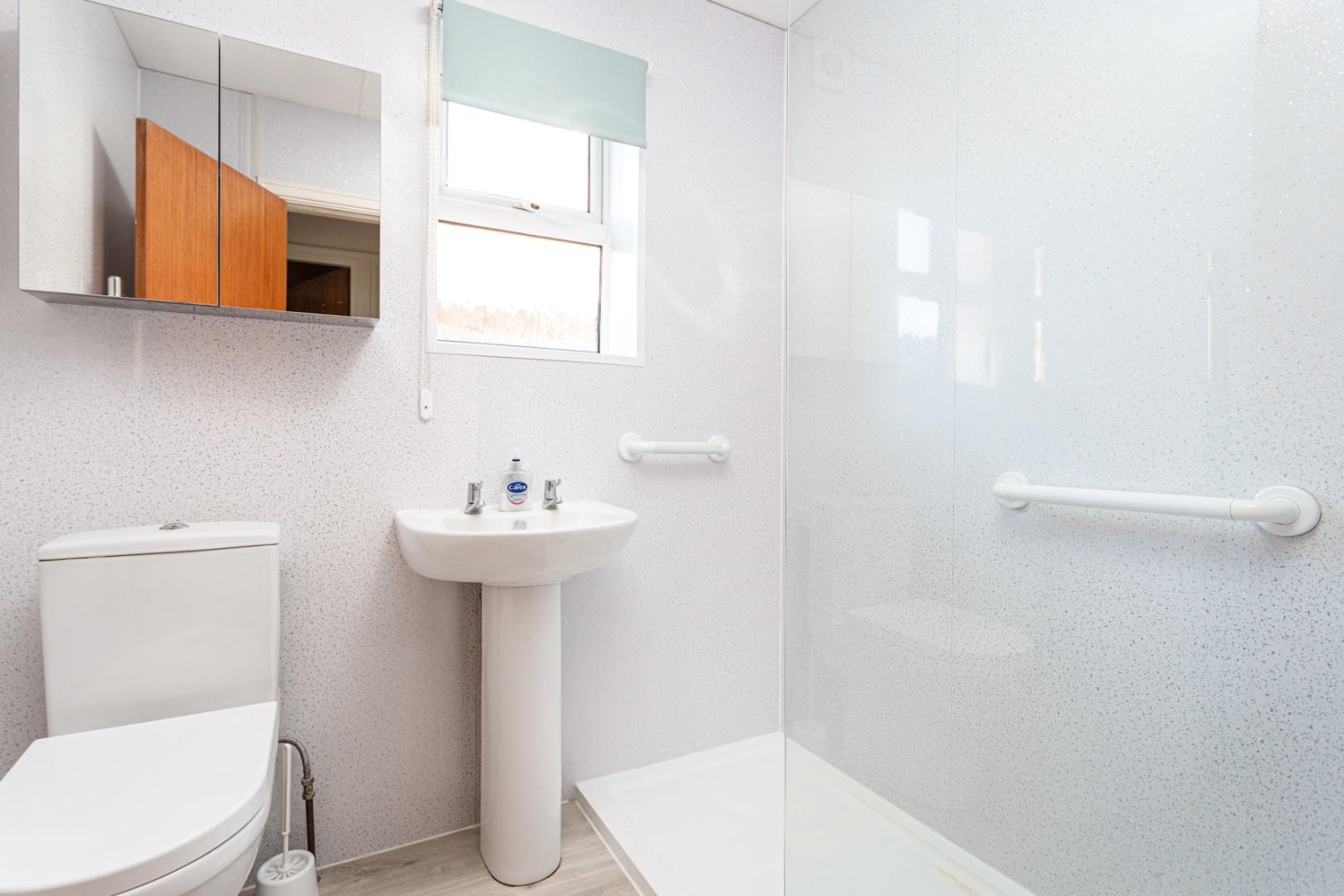 An inner lobby, complete with an airing cupboard, leads off into 2 well-proportioned double bedrooms, one with a range of fitted wardrobes and both overlooking the rear garden. The property also benefits from a stylish shower room, newly fitted in 2023 that features a generous walk-in shower and an electric heated towel rail.