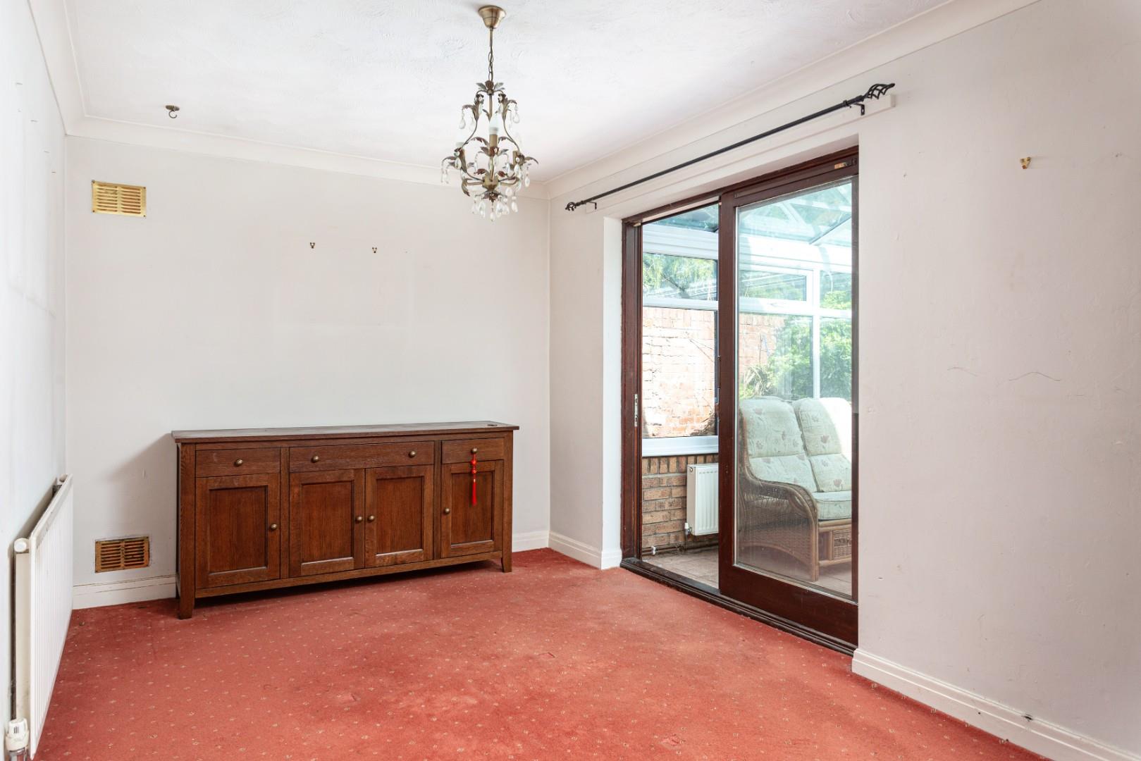 Beyond the main reception room is the dining room, a versatile space that has served various purposes over the years. From here, you can access both the conservatory and the kitchen, located to the right.