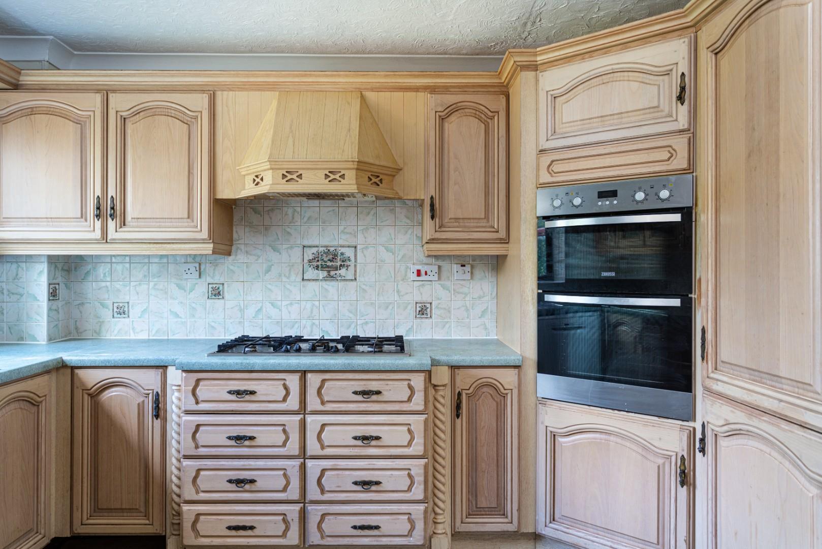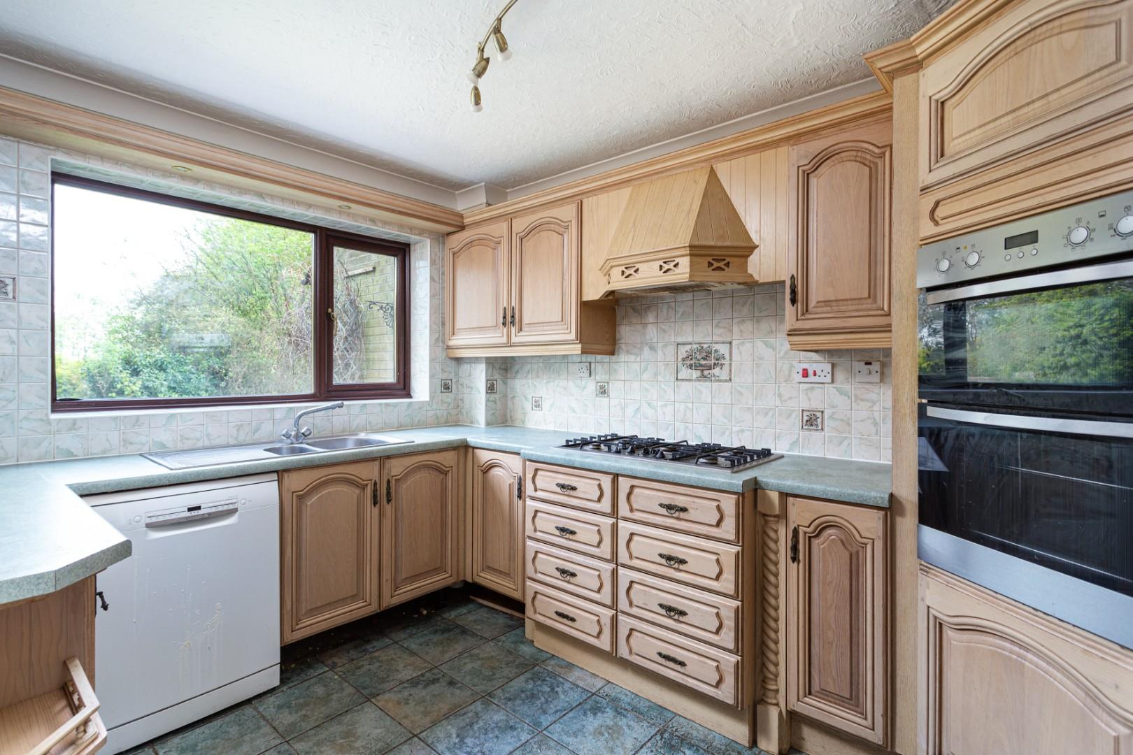 The kitchen would benefit from some updating, and currently comprises a range of wall and base units along with integrated appliances and a stainless steel sink with drainer. There is also a large understairs cupboard, offering valuable additional storage space.