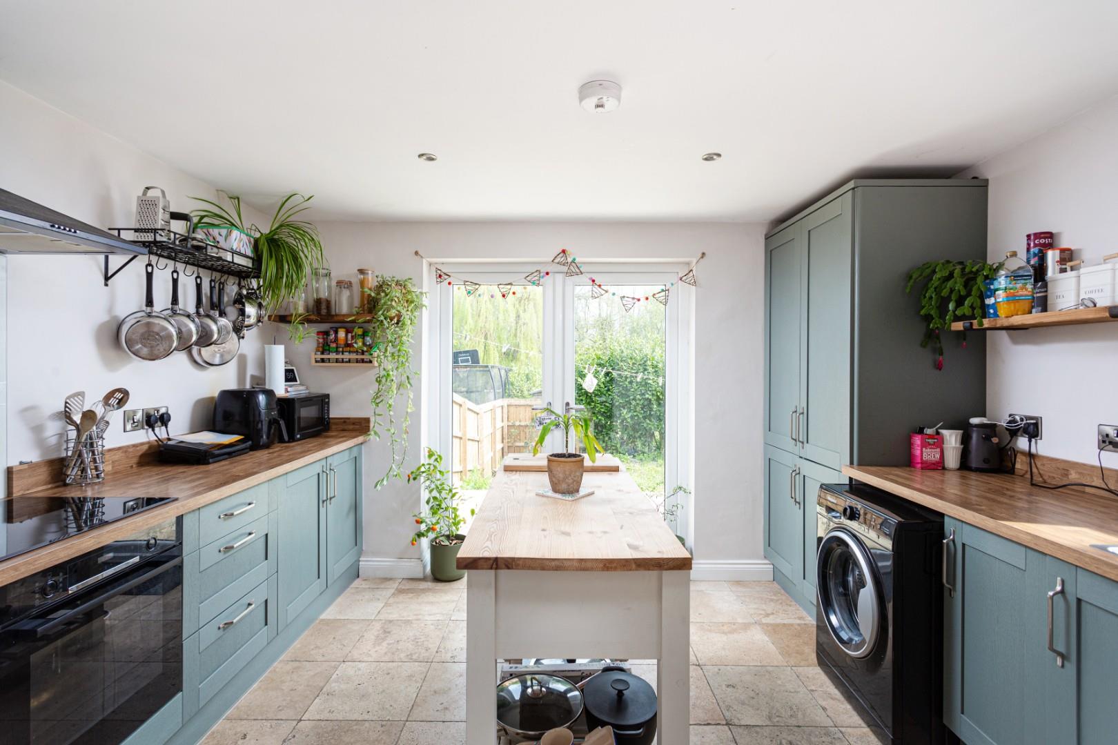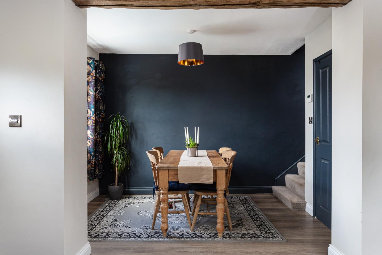 The ground floor is well arranged, with a comfortable sitting room providing a cosy yet refined space to relax, complemented by a separate dining room that works equally well for everyday use or entertaining. To the rear, the kitchen forms part of a two-storey extension and has been thoughtfully designed to sit in keeping with the cottage, combining modern functionality with a softer, more traditional style. Double doors open directly onto the rear patio, allowing the space to connect naturally with the garden and creating an ideal setting for both day-to-day living and hosting.