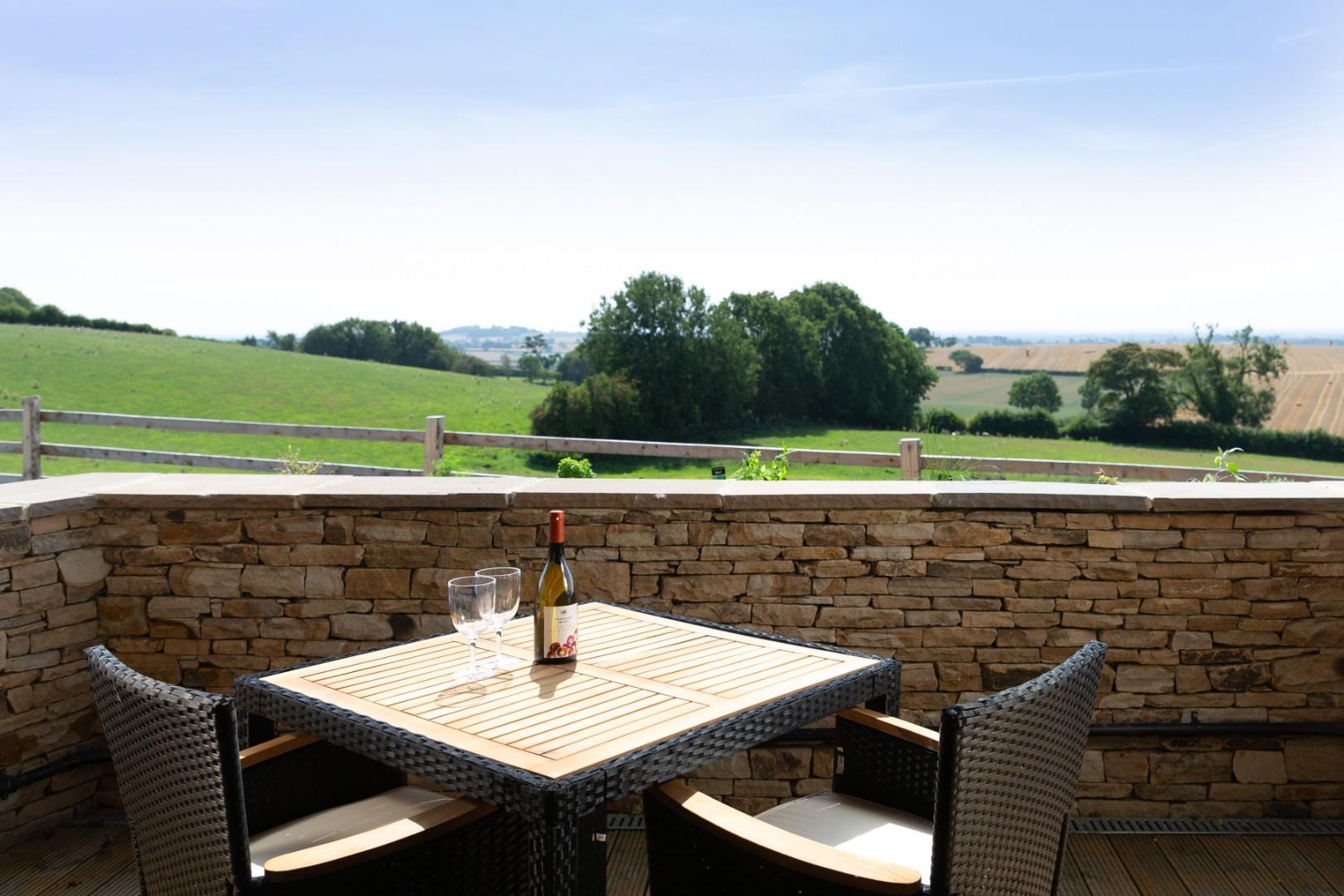 Taras Sarn (Pod 1), meaning 'Stone Castle', is blessed with breathtakingly beautiful views across the Vale of York as well as fine views towards Crayke Castle and even the "golf balls" at Menworth Hill some 22 miles away. But on a clear night, and a decent pair of binoculars, you might even catch a glimpse of the twinkling lights of the Humber Bridge which is over 40 miles away!
