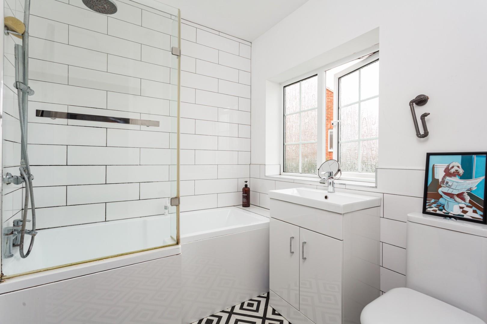 Upstairs, there are two generous double bedrooms, both beautifully presented and offering plenty of space for furnishings. The main bedroom benefits from built-in storage, while the second bedroom provides flexibility to serve as a guest room, child's bedroom, or home office. The modern family bathroom is finished to a high standard, featuring elegant fittings and a clean, contemporary design.