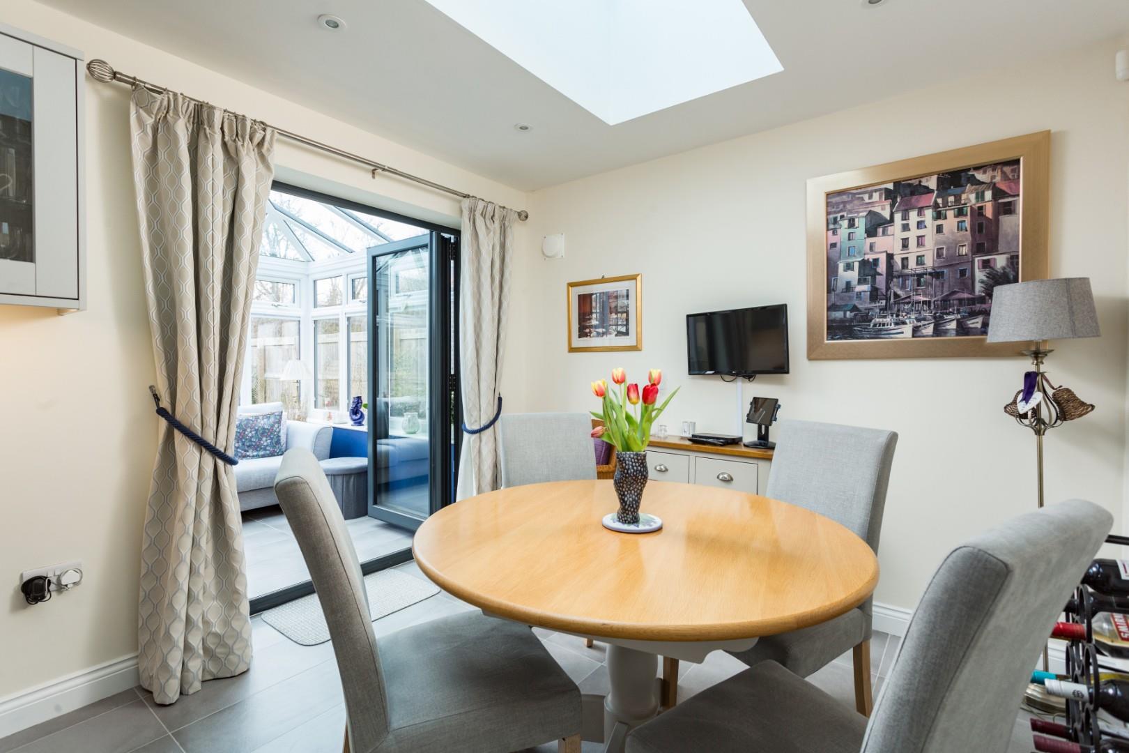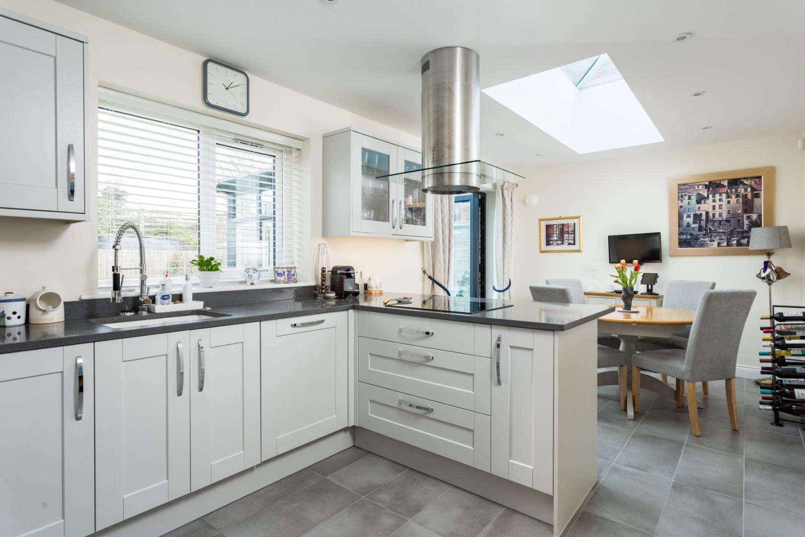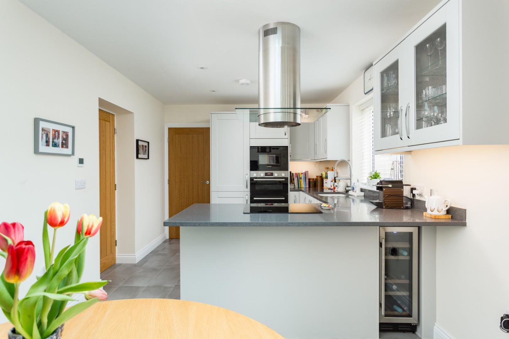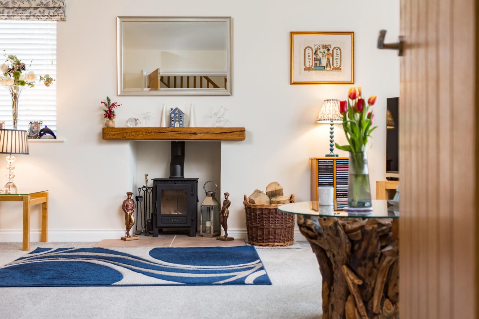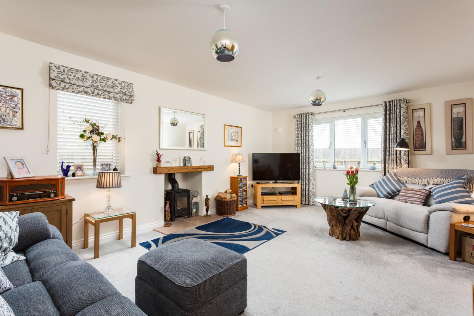 An impressive 19'3" (5.87m) long reception hall with staircase, storage and cloakroom/wc creates an immediate sense of space and quality. From here, elegant double doors open into a spacious sitting room with feature fireplace and Esse wood burning stove and the superbly appointed 19'9" (6.02m) long dining kitchen features a roof lantern above the dining area and a beautifully appointed kitchen that includes quartz worktops that incorporate a dining bar and generous cabinetry complemented by a range of integrated appliances to include a touch control hob, eye-level oven, grill and microwave, fridge, freezer and dishwasher. Leading of the dining kitchen is a fabulous garden room with independently controlled underfloor heating and a superbly appointed utility room with further quartz worktops, direct access out into the rear garden and a personnel door into the integral garage.