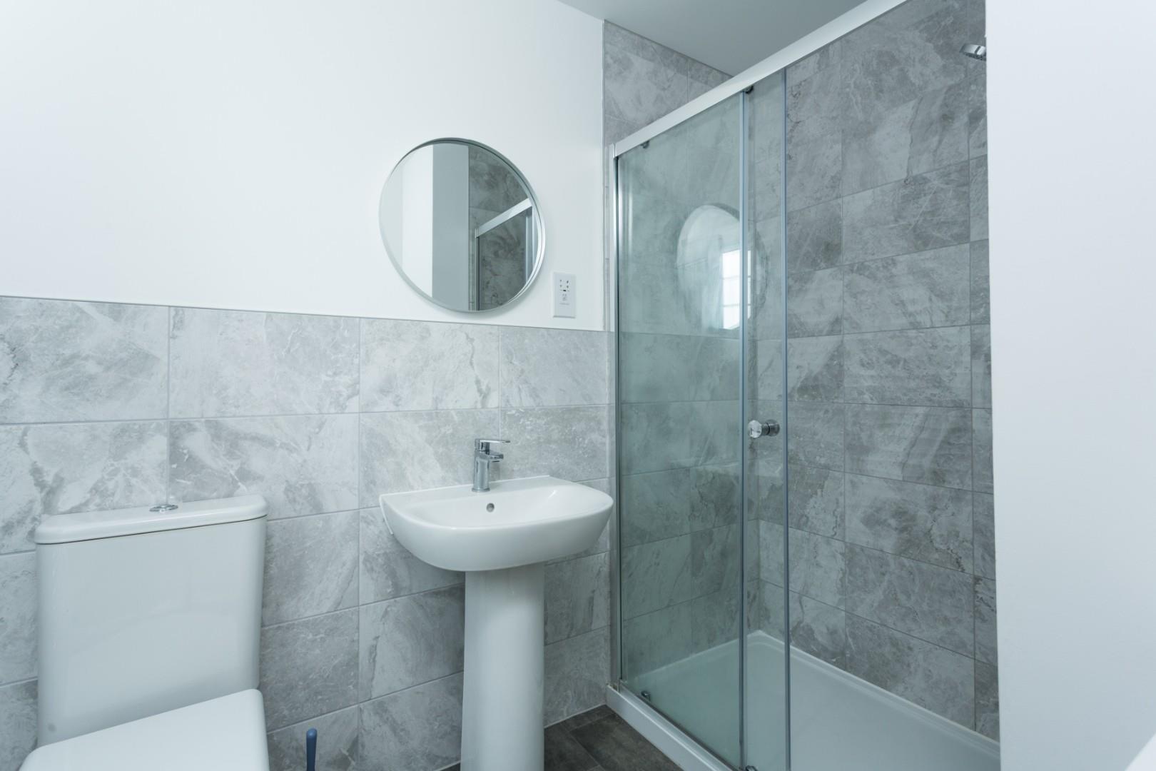A spacious first floor landing leads off into a generous primary bedroom with stylish en-suite shower room, 2 further bedrooms and a house bathroom with heated towel rail and a shower over the bath.