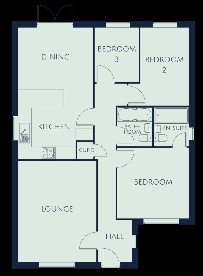 Description - Plot 3 - Friargate is an impressive three-bedroom detached bungalow, thoughtfully designed with modern living in mind. The layout features a kitchen dining arrangement, with a spacious lounge positioned to the front and three well-proportioned double bedrooms both serviced by a house bathroom. Bedroom one is complimented by an en suite.