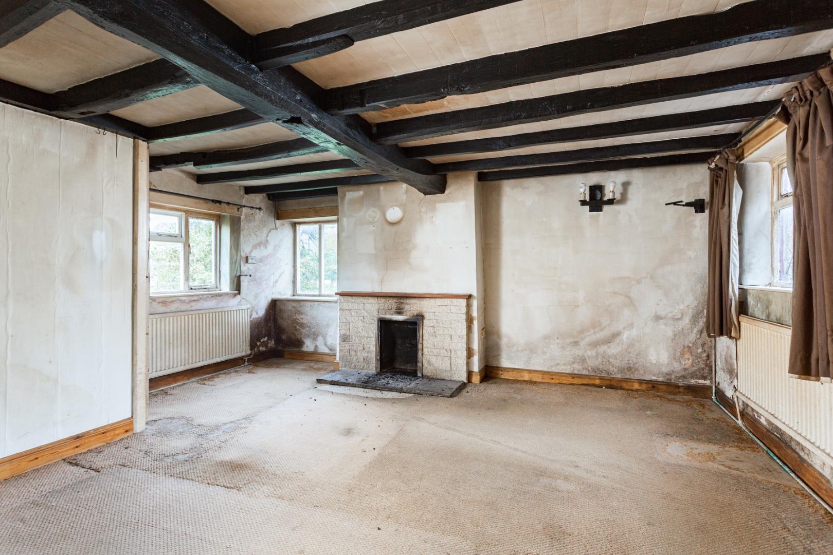 Inside - A side porch leads off into a sitting room with exposed beams and open fireplace and a dining kitchen with further beams, open fireplace, walk-in pantry and an opportunity to update, replace and restyle the existing 1970's base units.